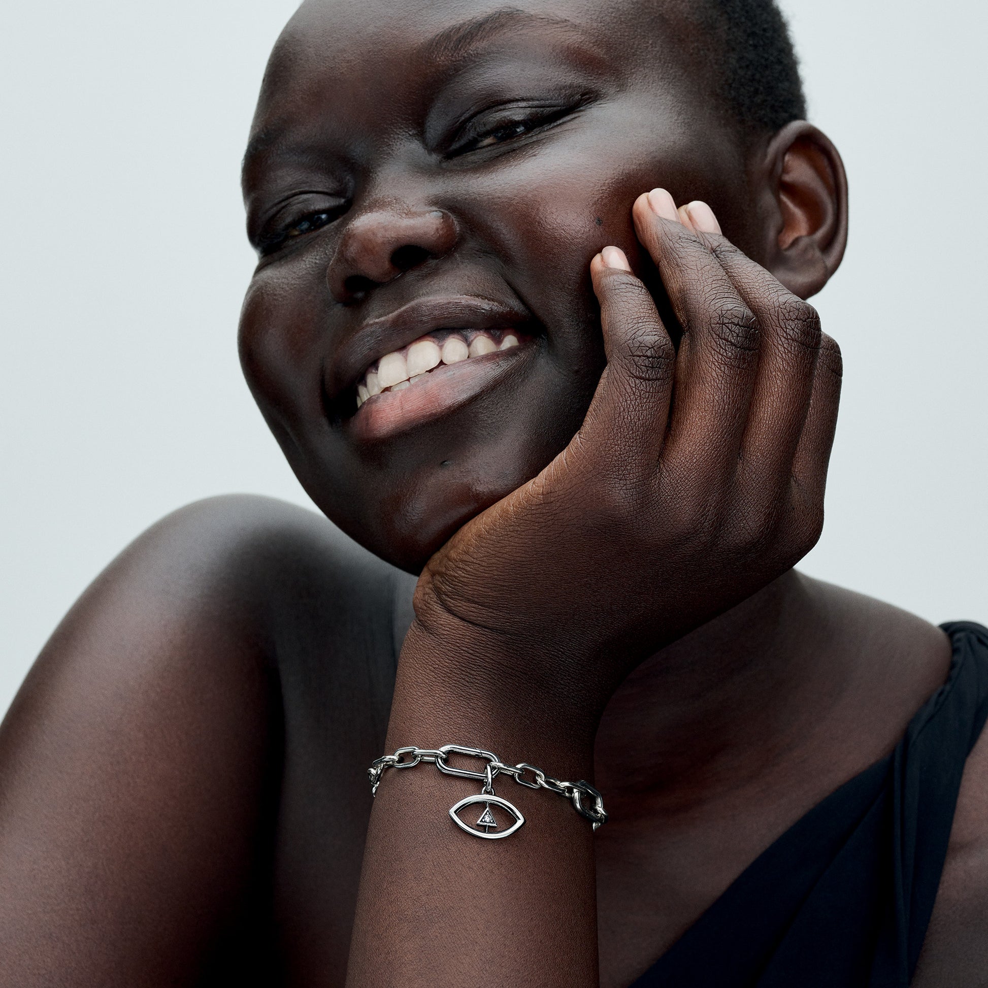 Eye Sterling Silver Medallion With Clear Cubic Zirconia