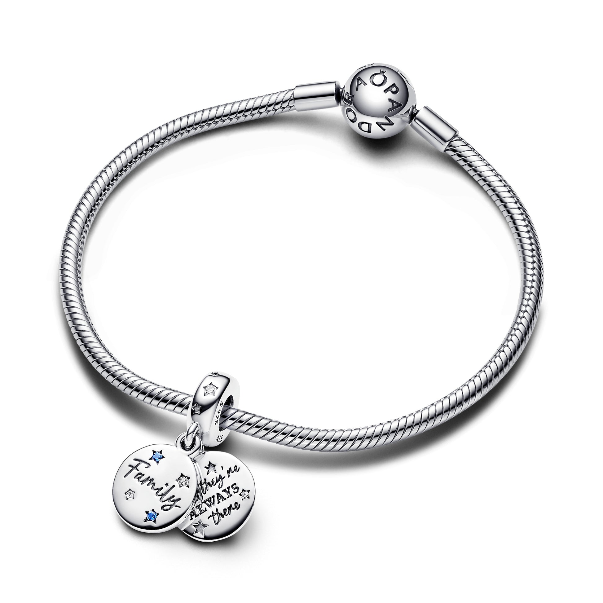 Family Sterling Silver Double Dangle With Stellar Blue Crystal And Clear Cubic Zirconia