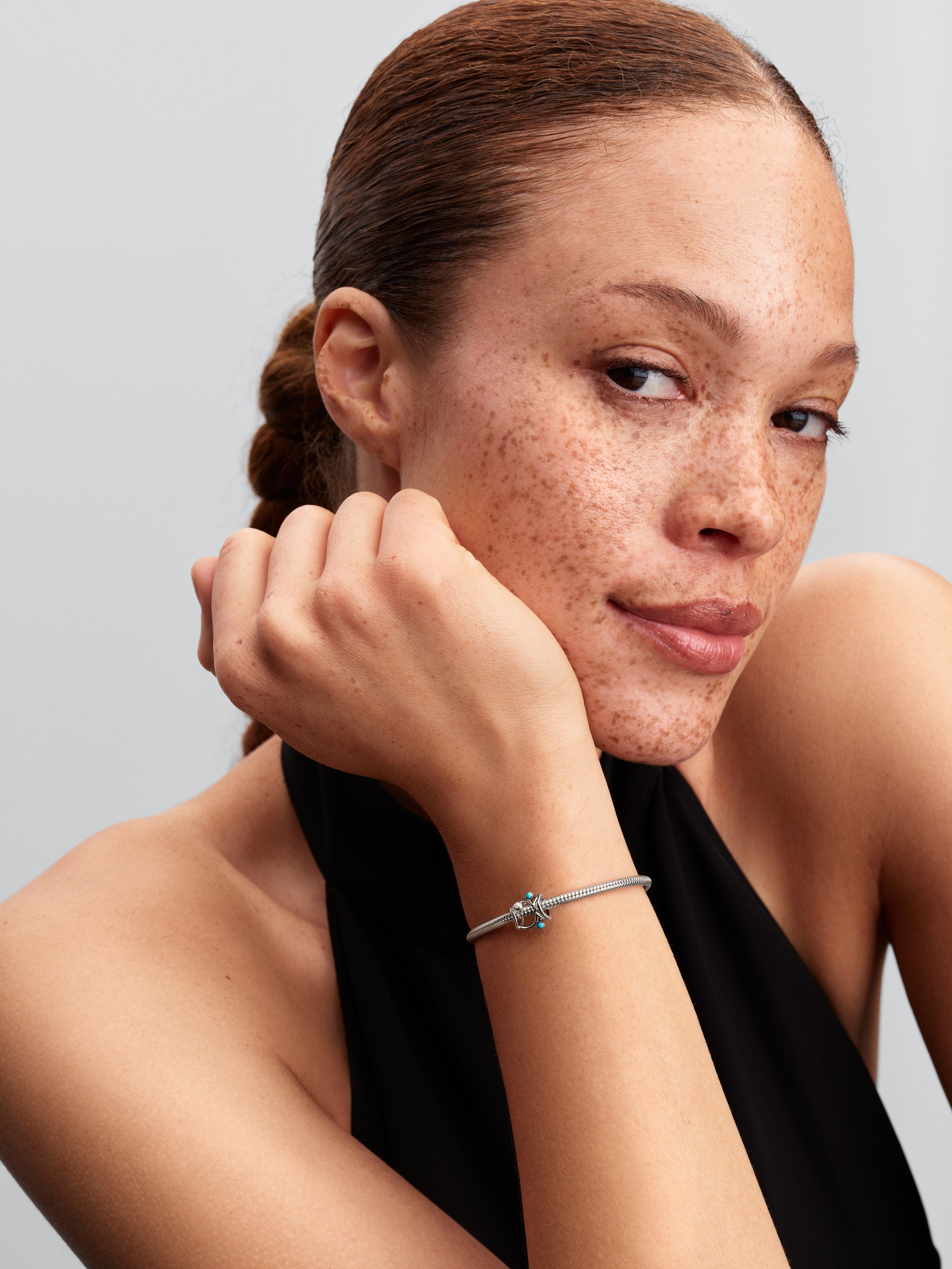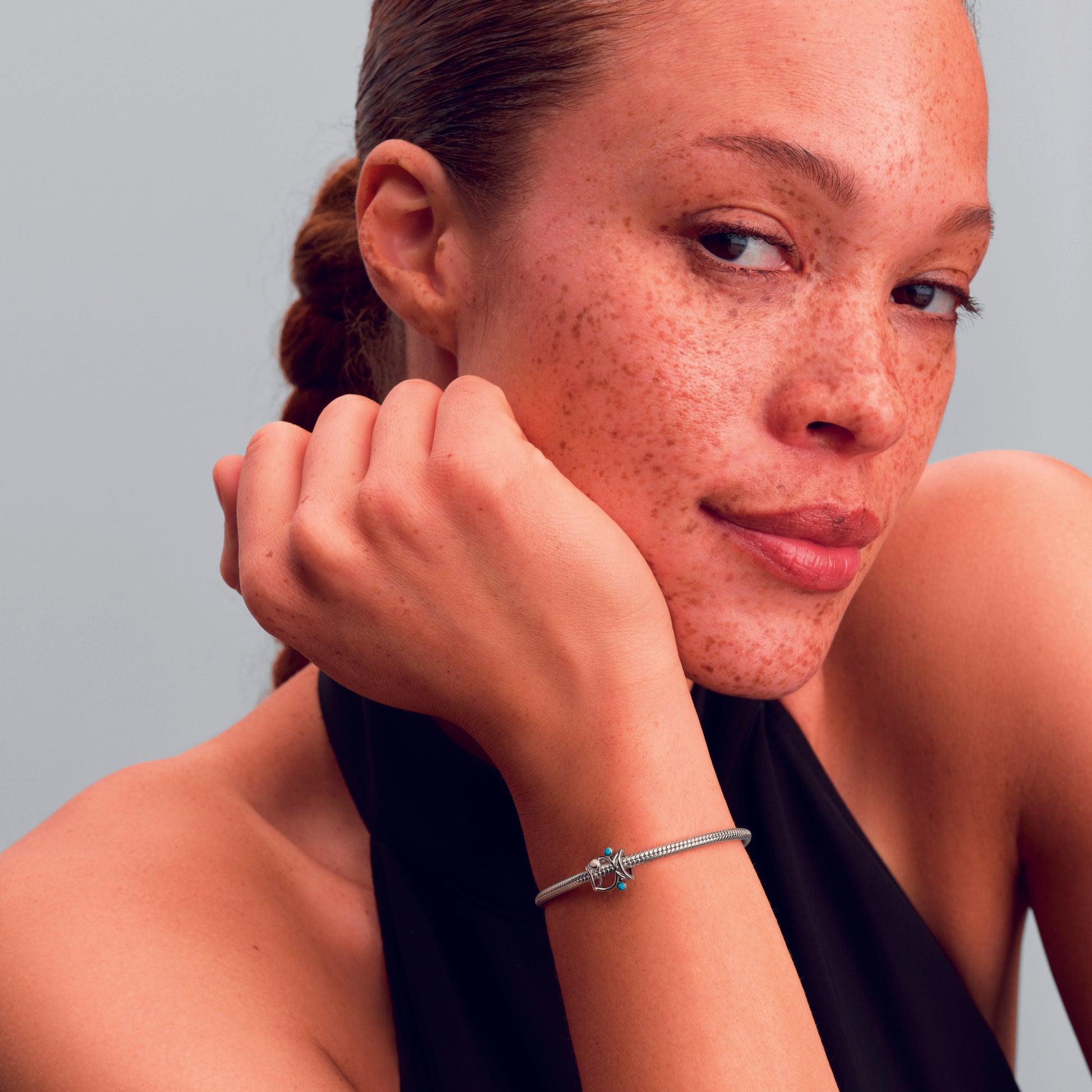 Fish Sterling Silver Charm With Shimmering White And Turquoise Enamel