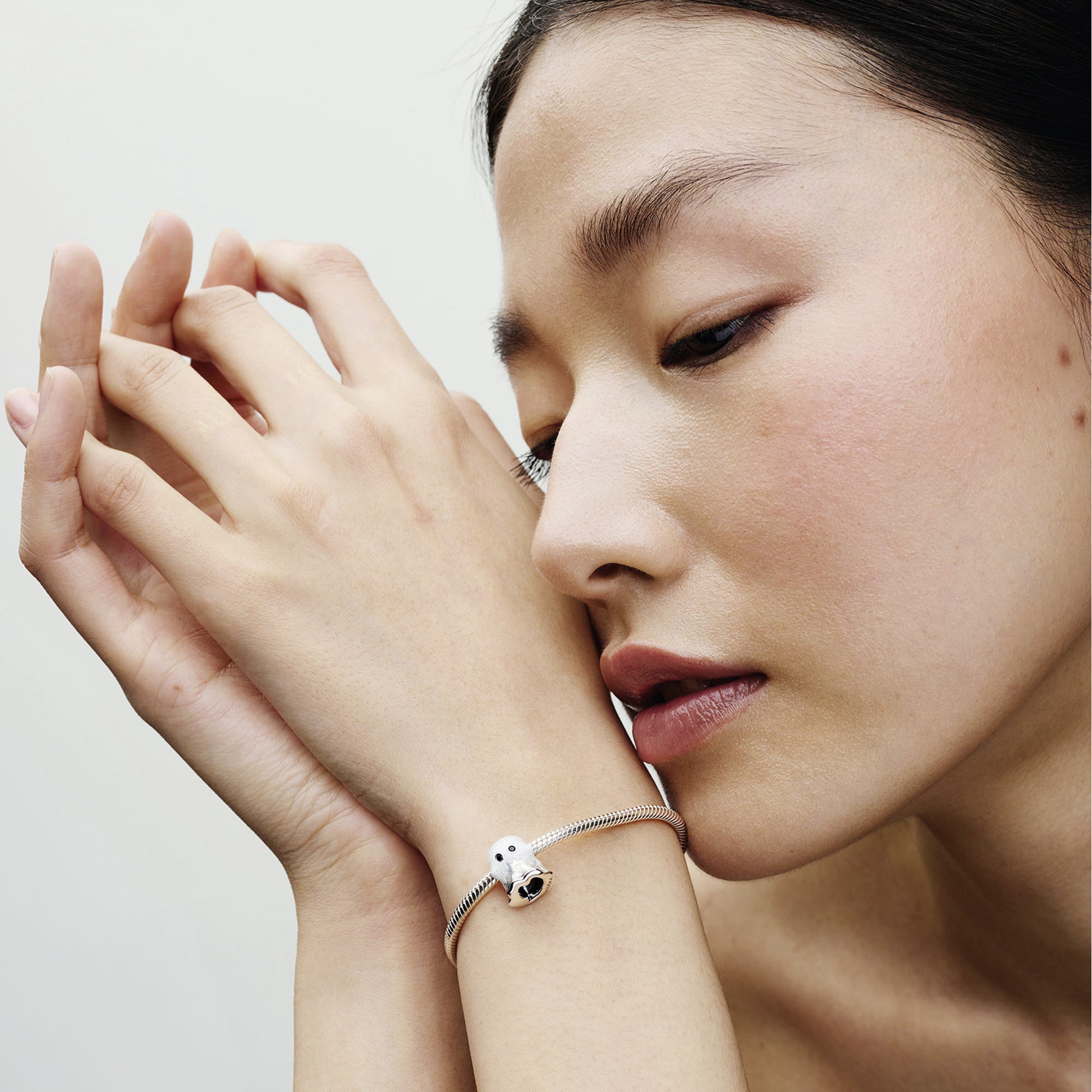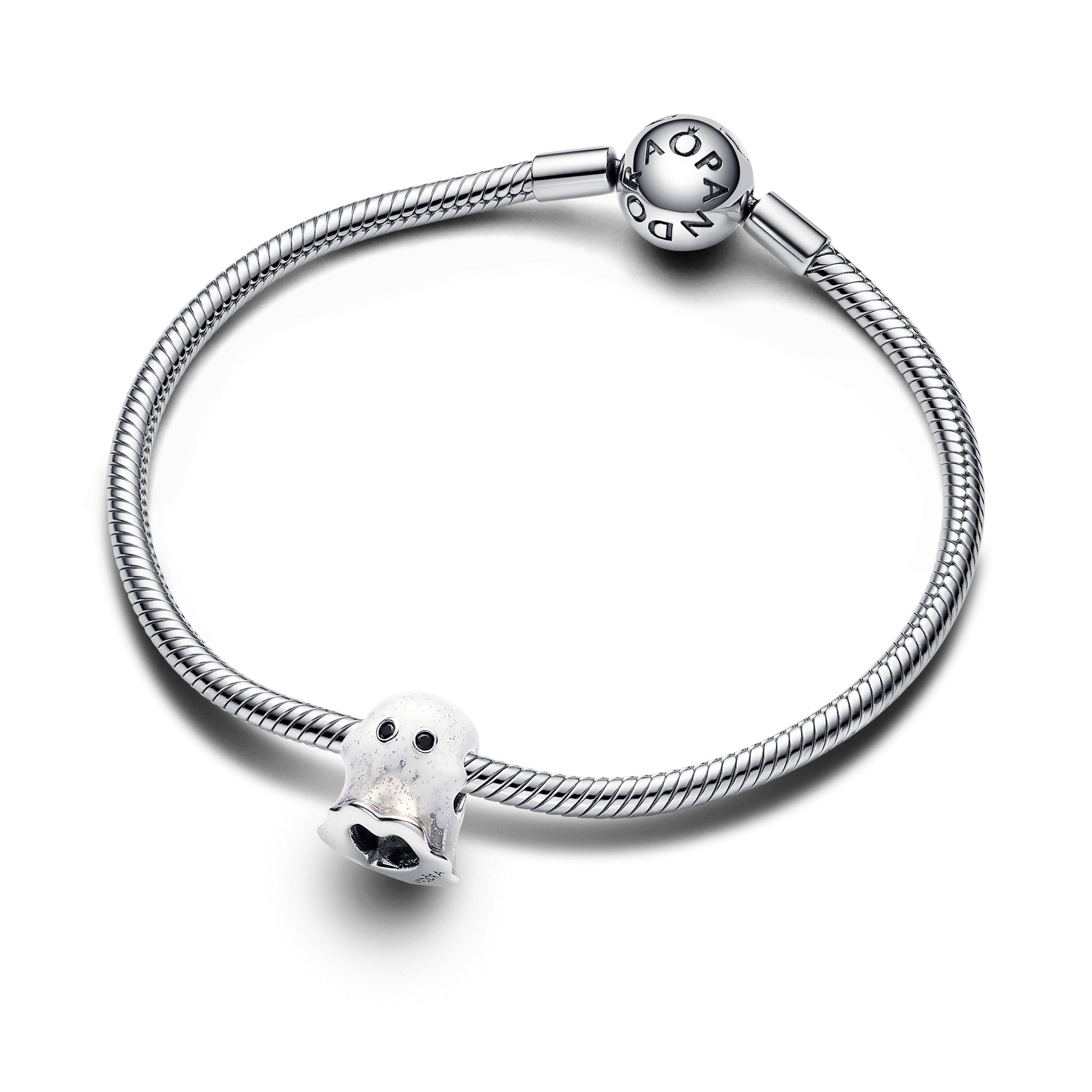 Ghost Sterling Silver Charm With Black Crystal And Shimmering White Glow In The Dark Enamel