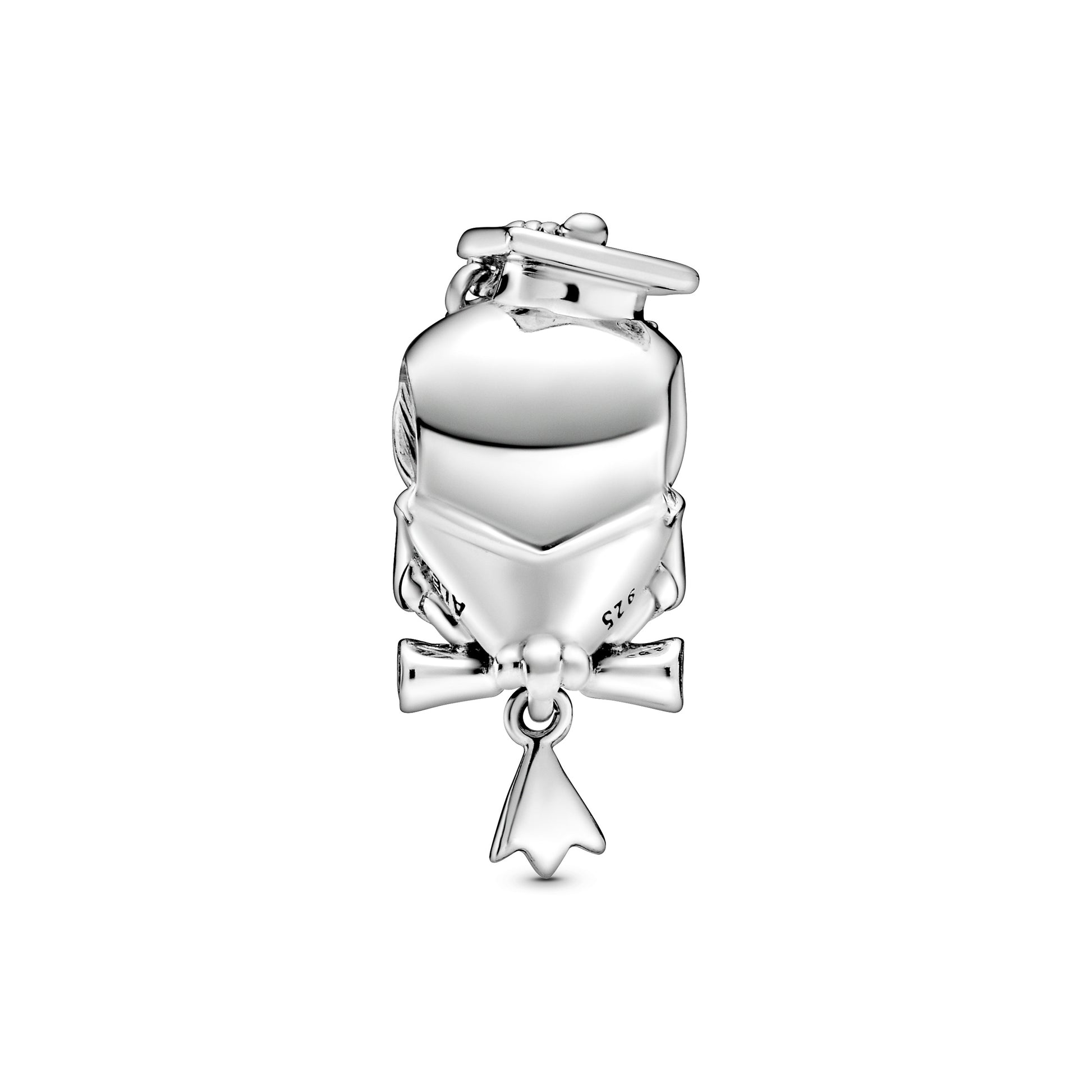Graduation Owl Sterling Silver Charm With Stellar Blue Crystal