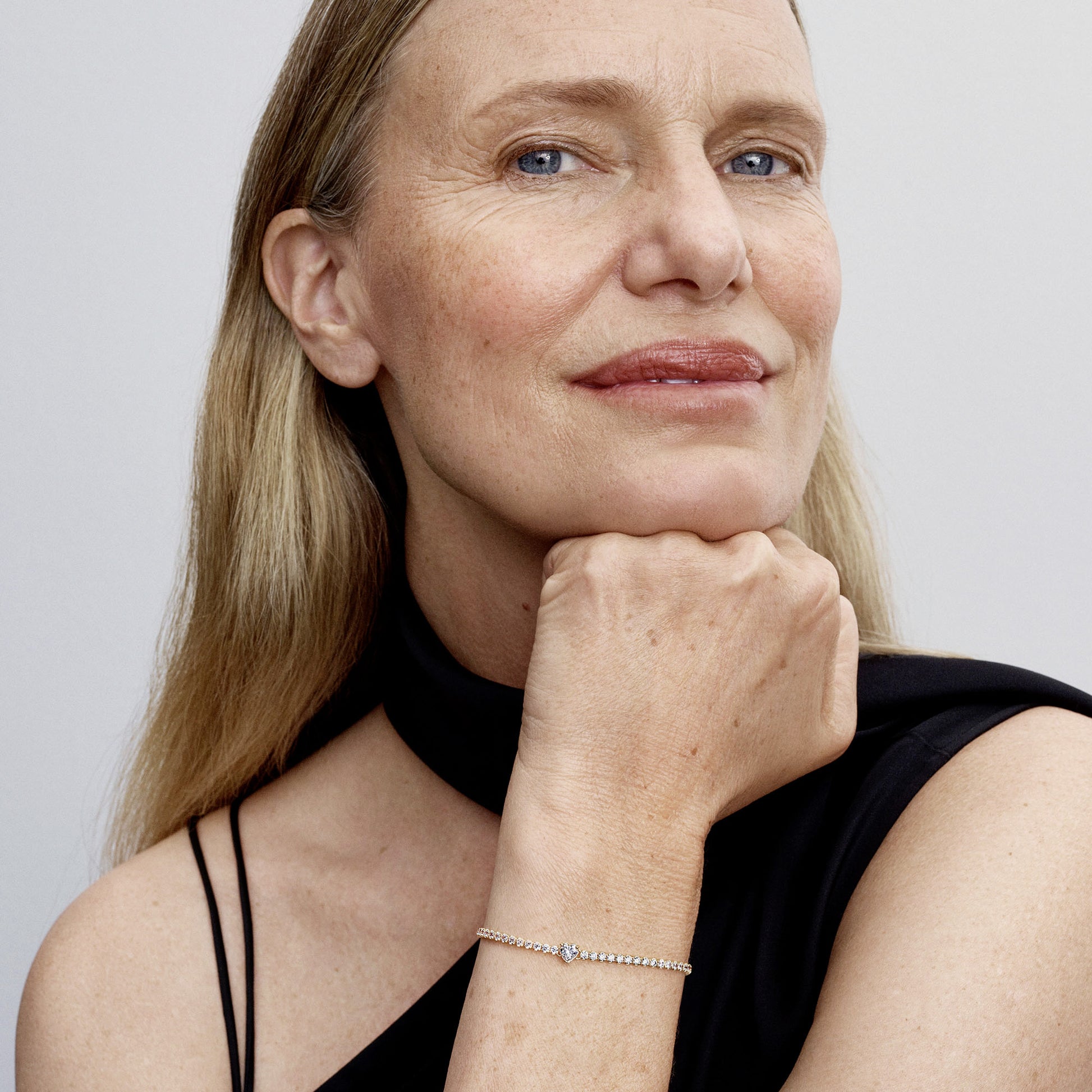 Heart 14K Gold-Plated Bracelet With Clear Cubic Zirconia