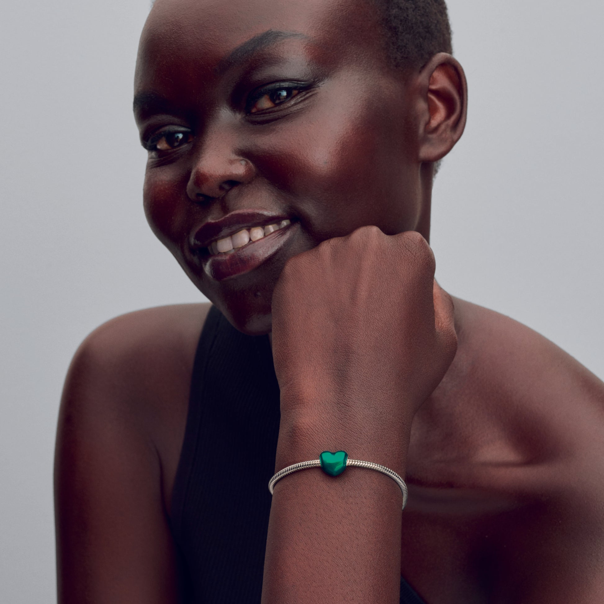 Heart Sterling Silver Charm With Transparent Green Enamel
