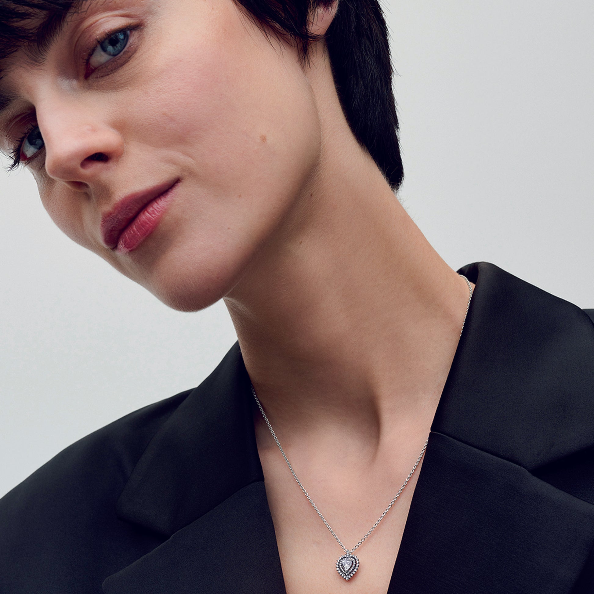 Heart Sterling Silver Collier With Clear Cubic Zirconia