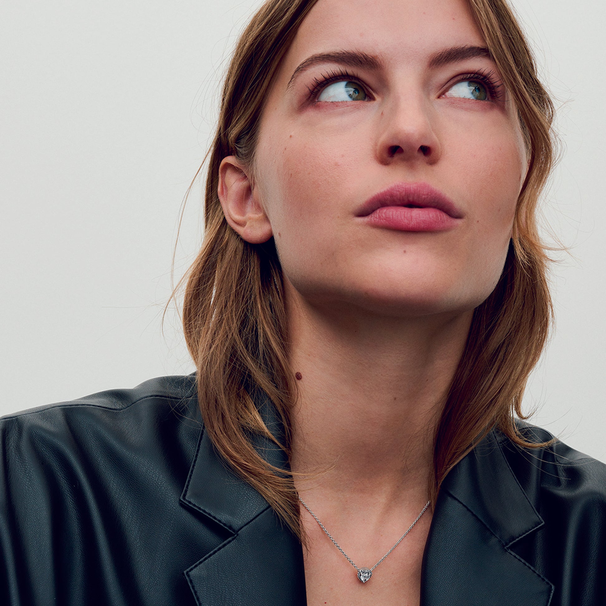 Heart Sterling Silver Collier With Clear Cubic Zirconia