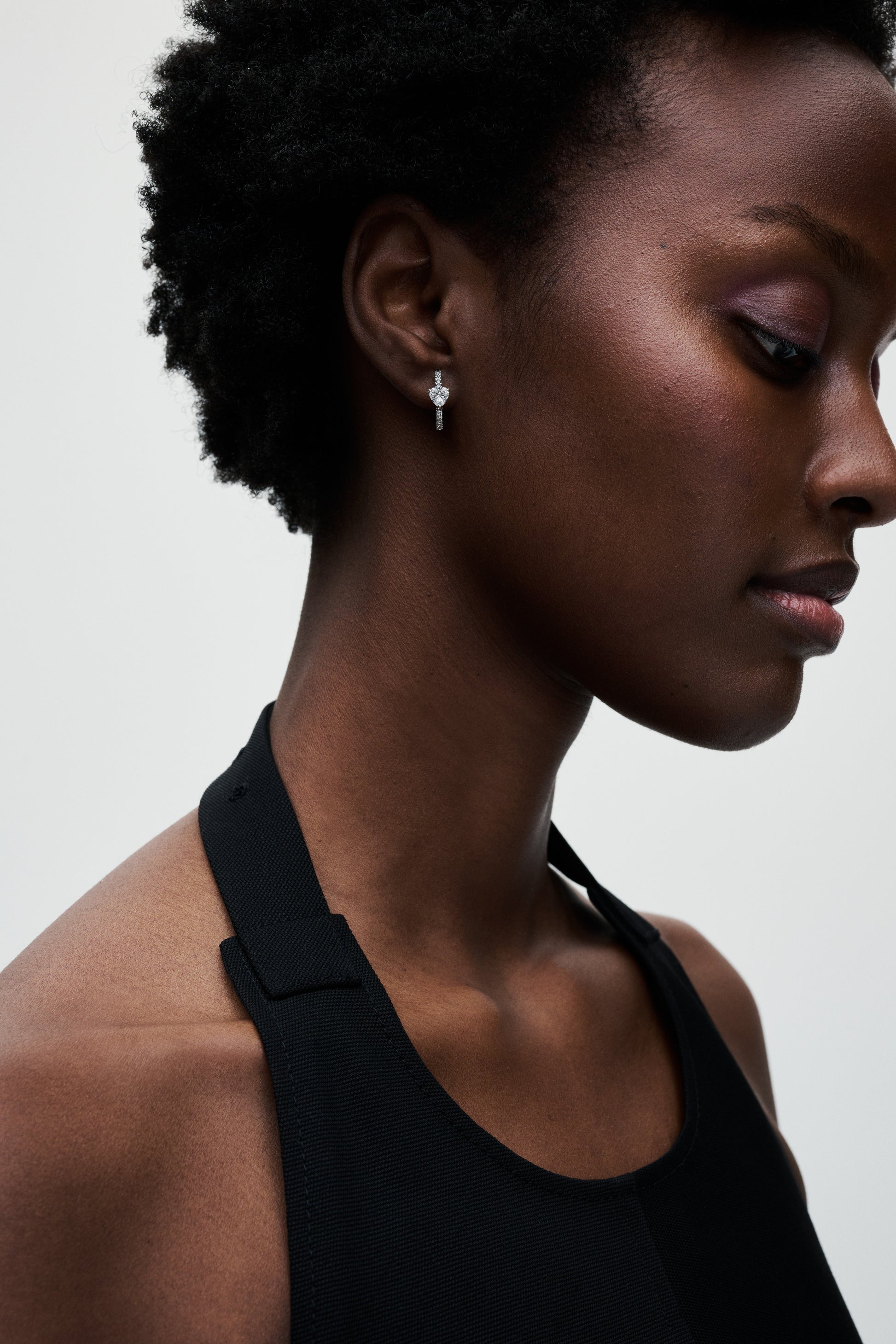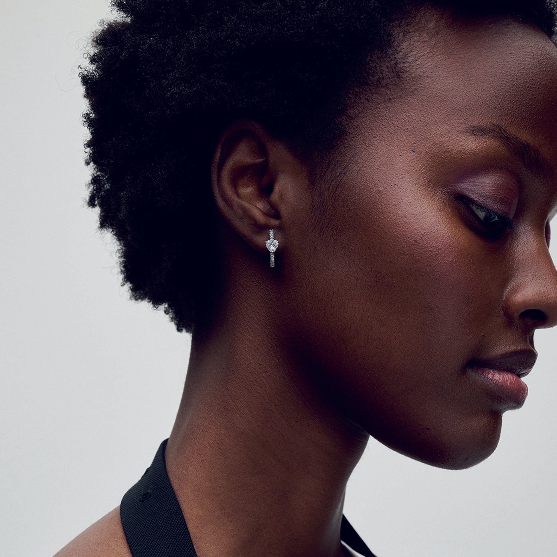 Heart Sterling Silver Hoop Earrings With Clear Cubic Zirconia