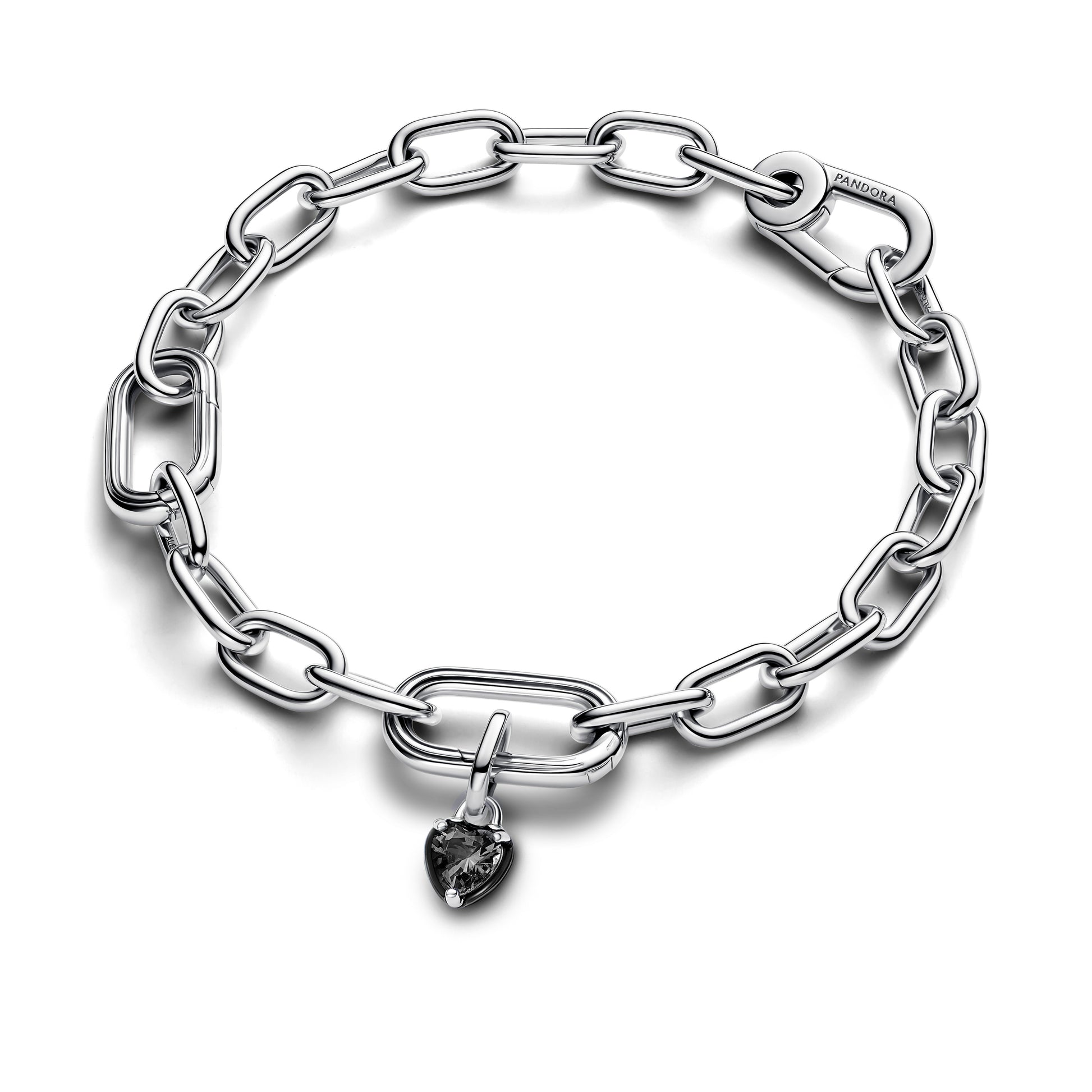 Heart Sterling Silver Mini Dangle With Black Crystal And Black Enamel