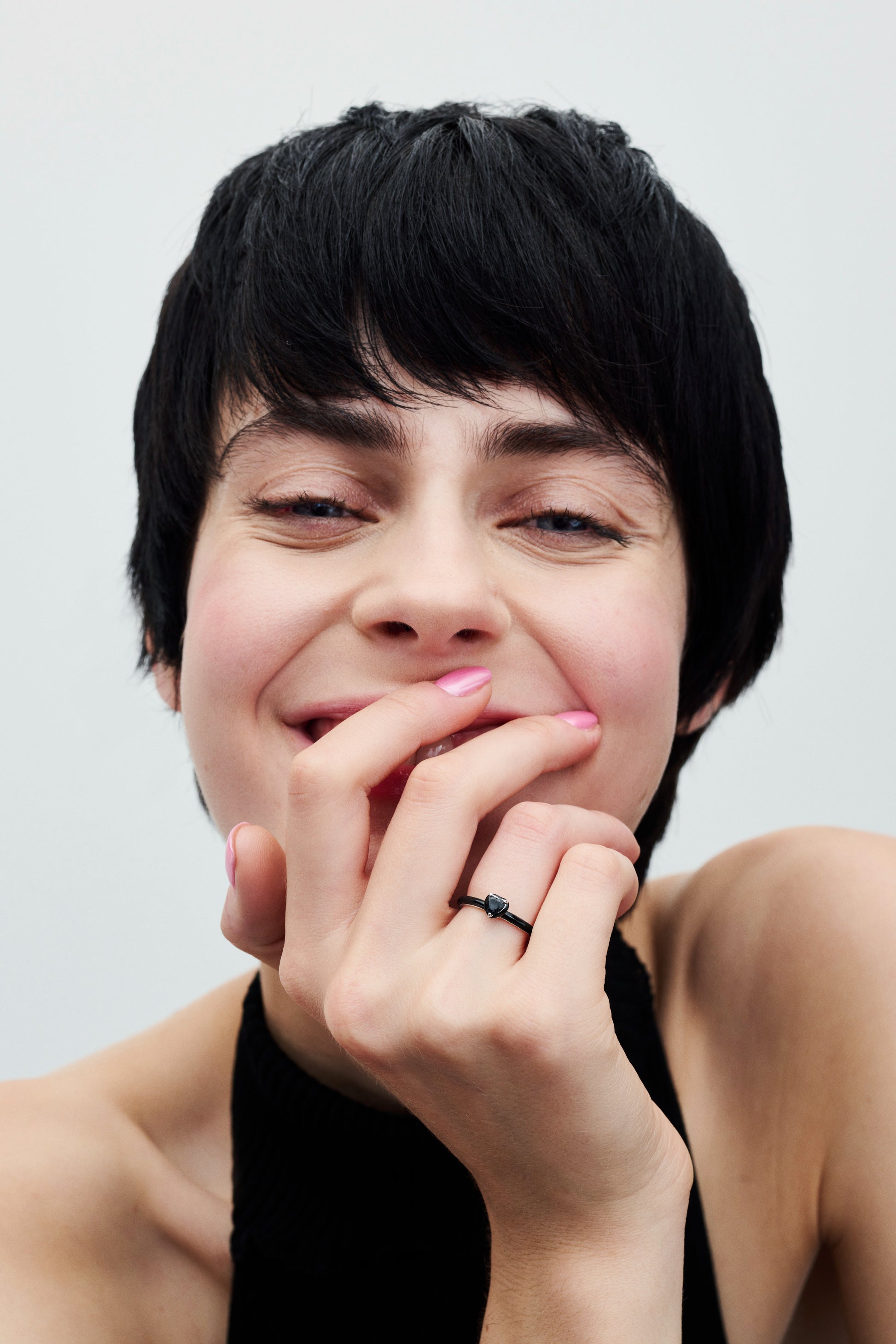 Heart Sterling Silver Ring With Black Crystal And Black Enamel