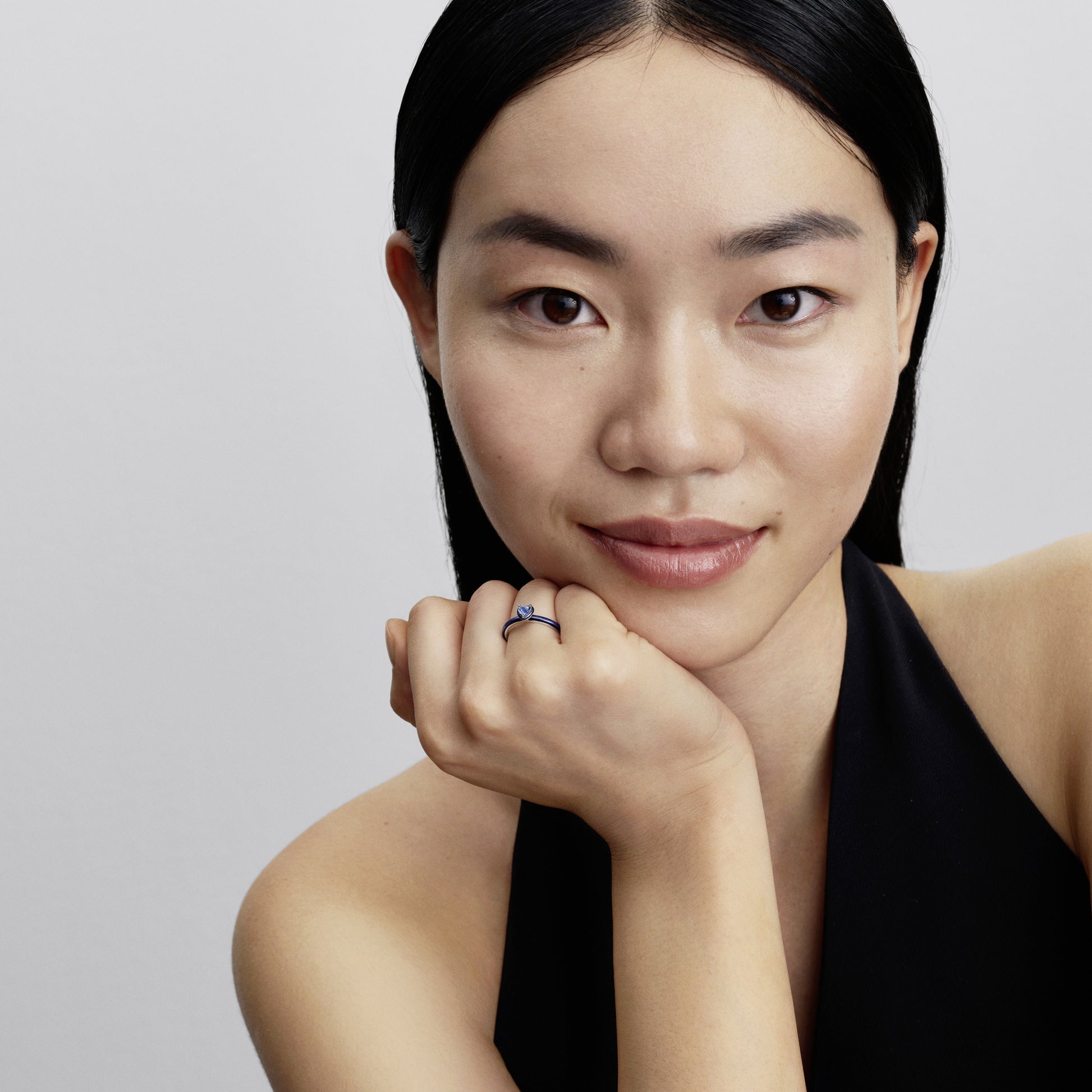 Heart Sterling Silver Ring With Blue Crystal And Blue Enamel
