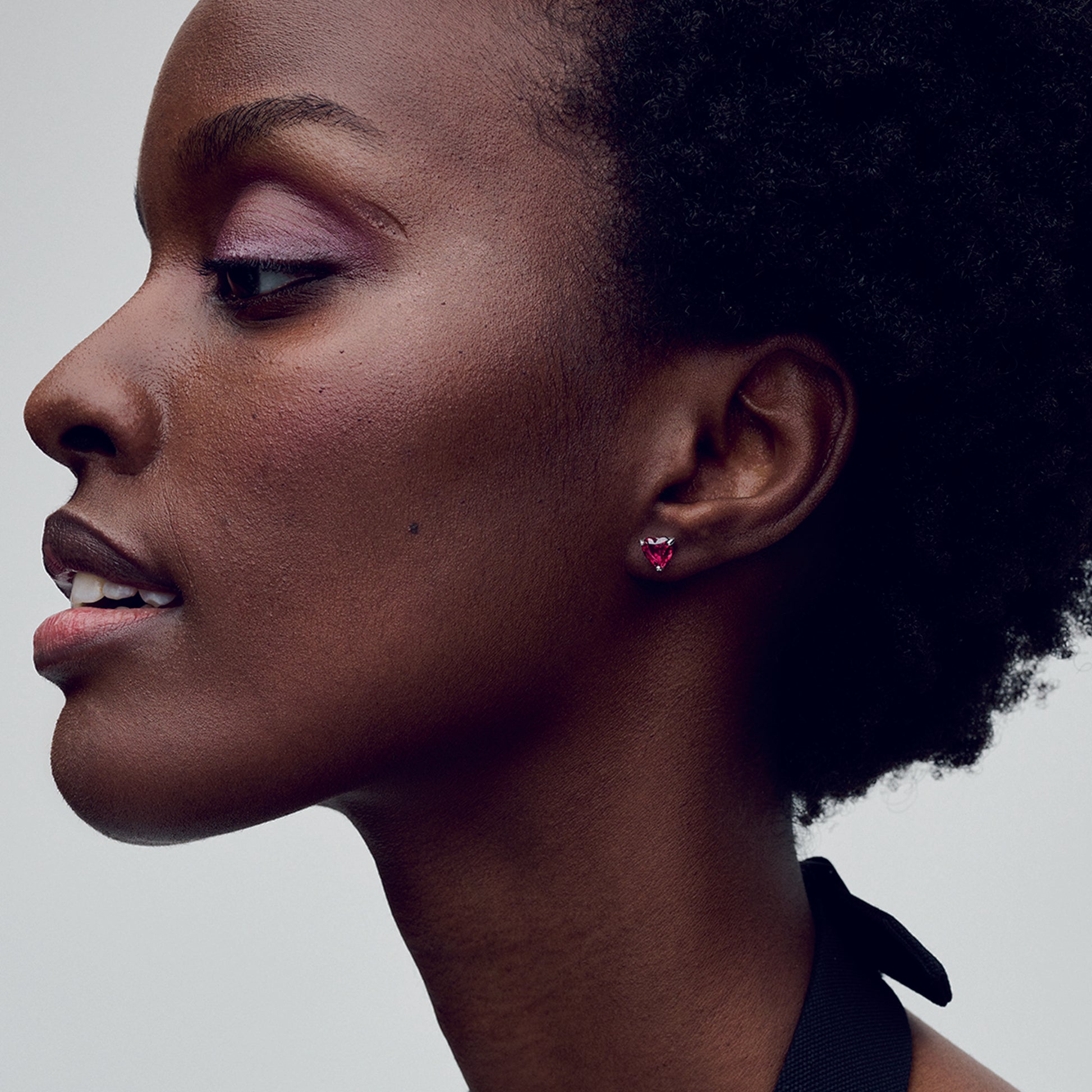 Heart Sterling Silver Stud Earrings With Cherries Jubilee Red Crystal