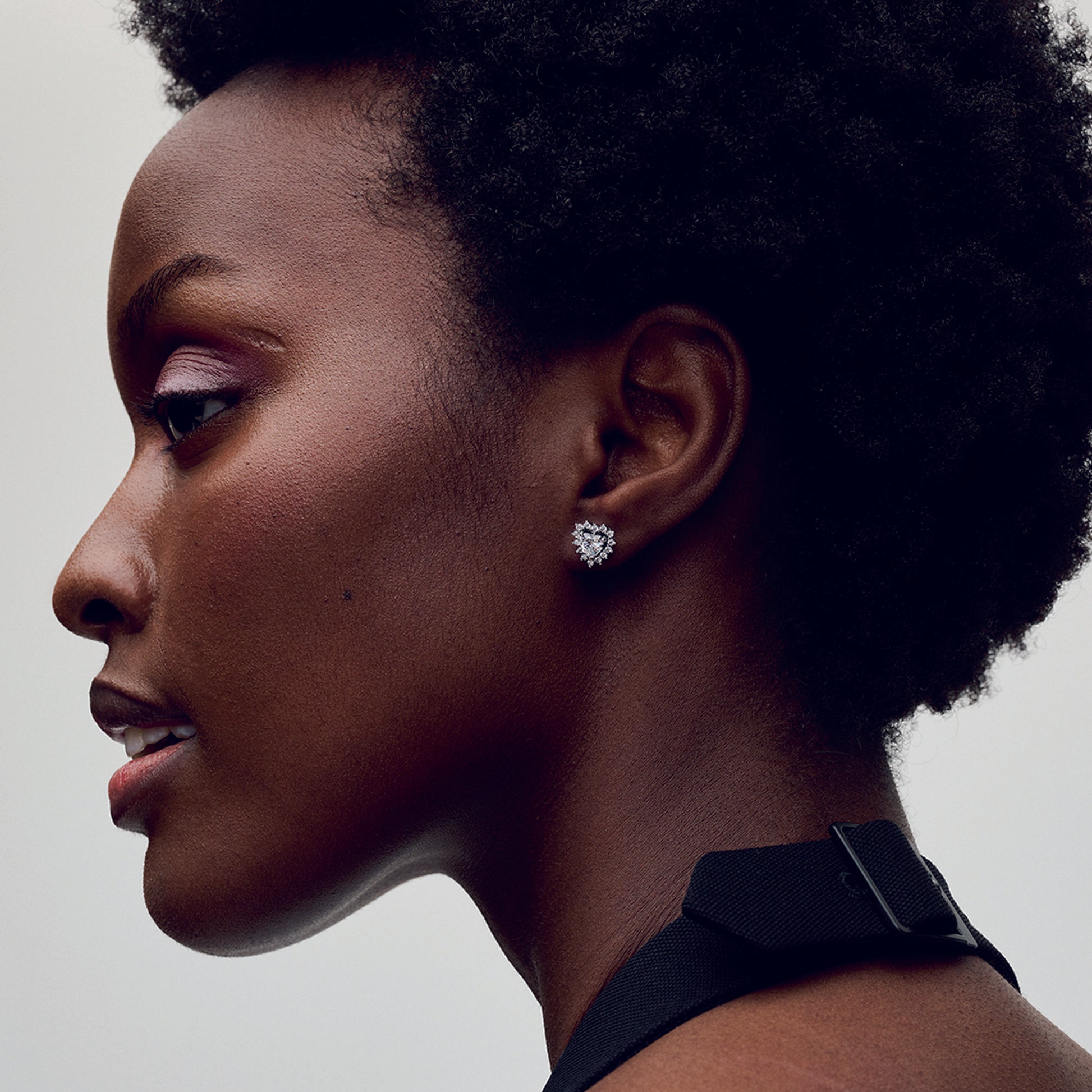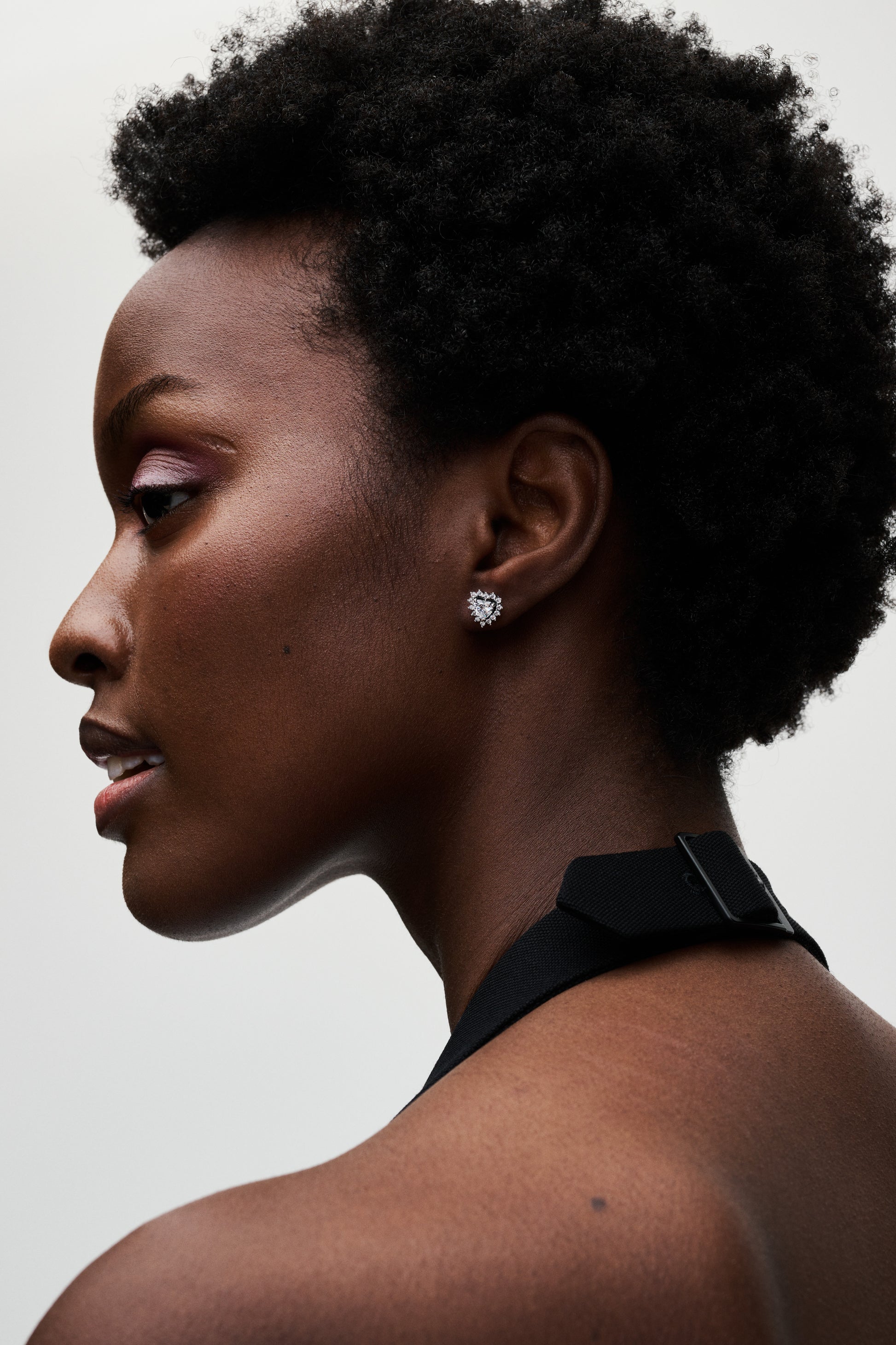 Heart Sterling Silver Stud Earrings With Clear Cubic Zirconia