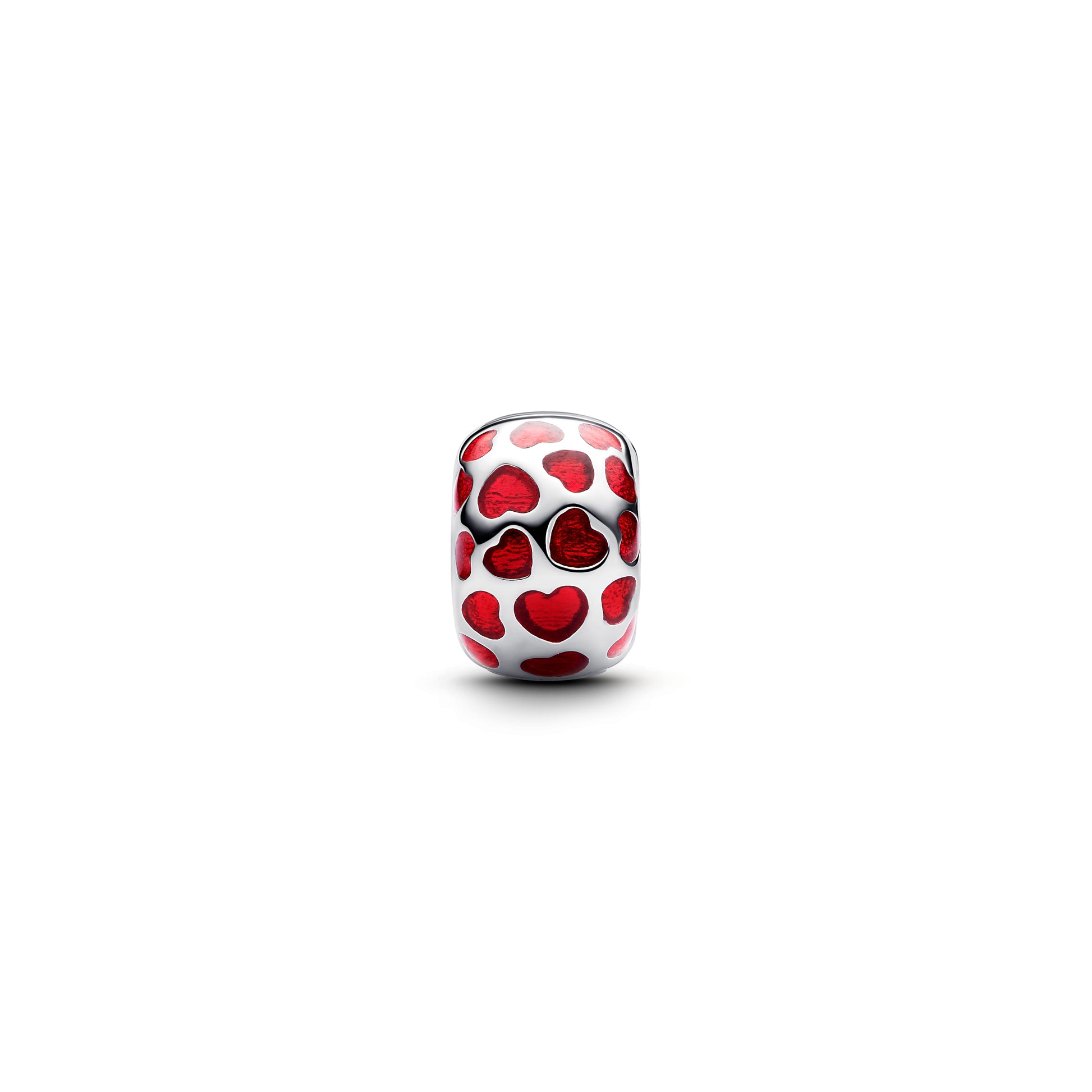 Hearts Sterling Silver Clip With Transparent Red Enamel