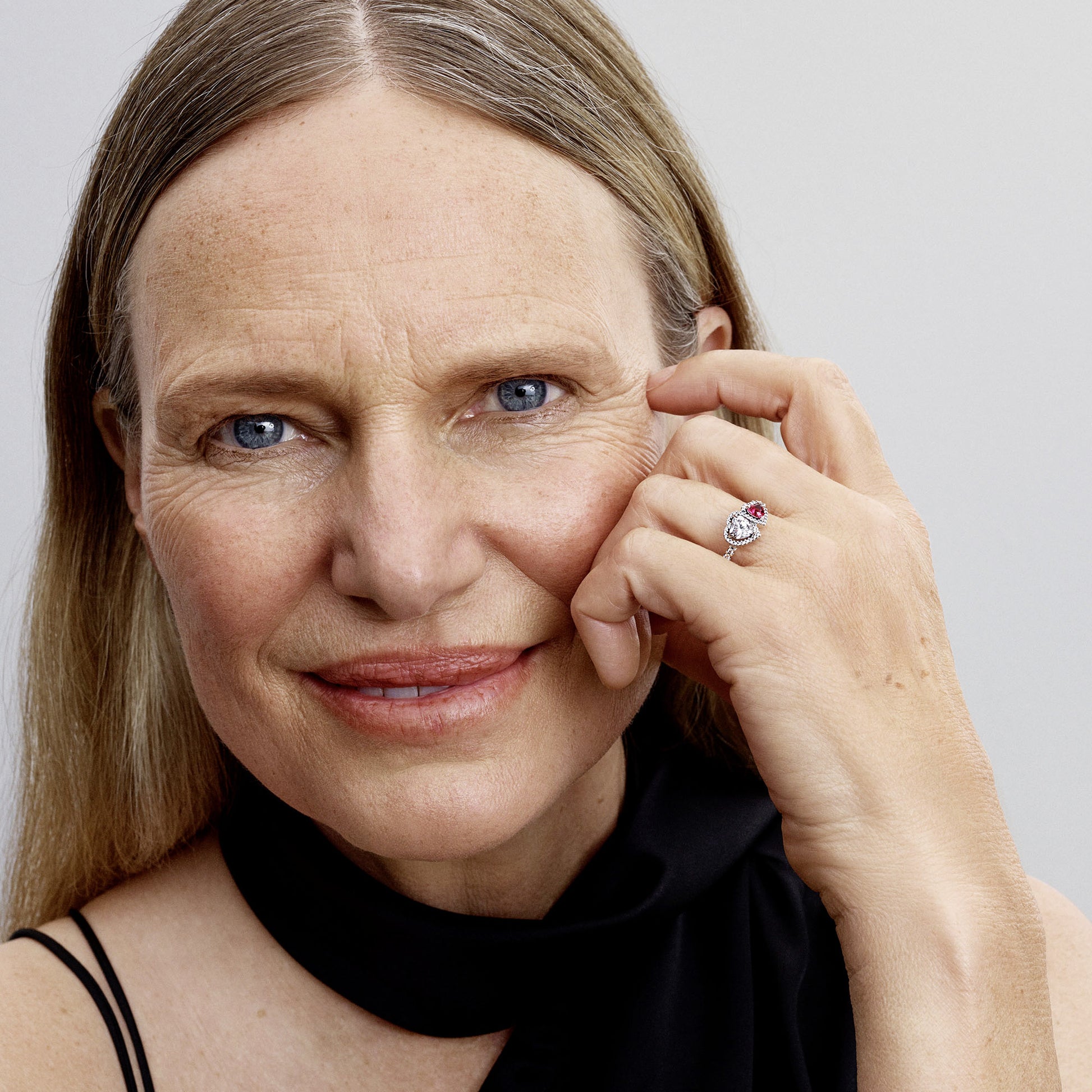 Hearts Sterling Silver Ring With Cherries Jubilee Red Crystal And Clear Cubic Zirconia