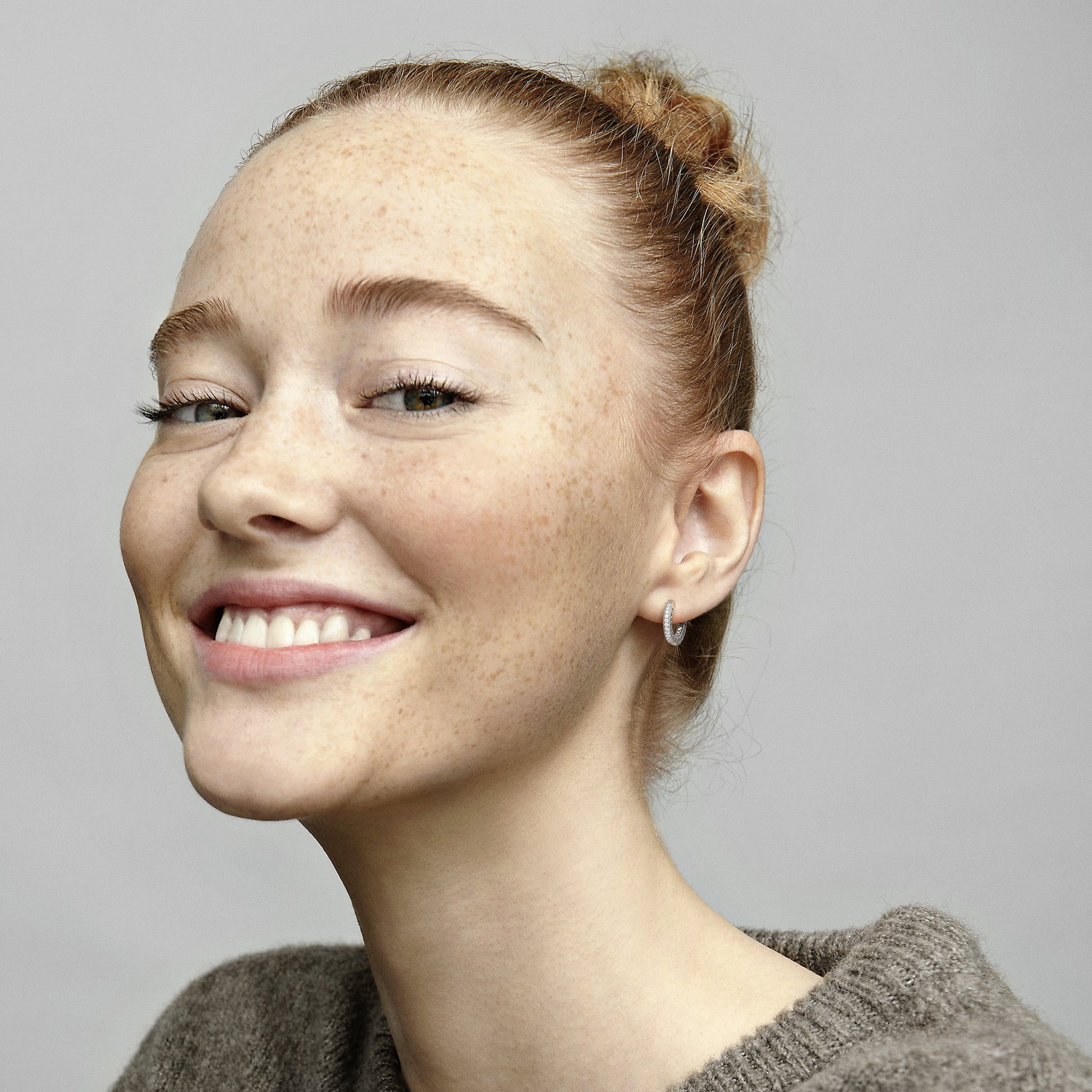 Hoop Silver Earrings With Clear Cubic Zirconia, 15 Mm