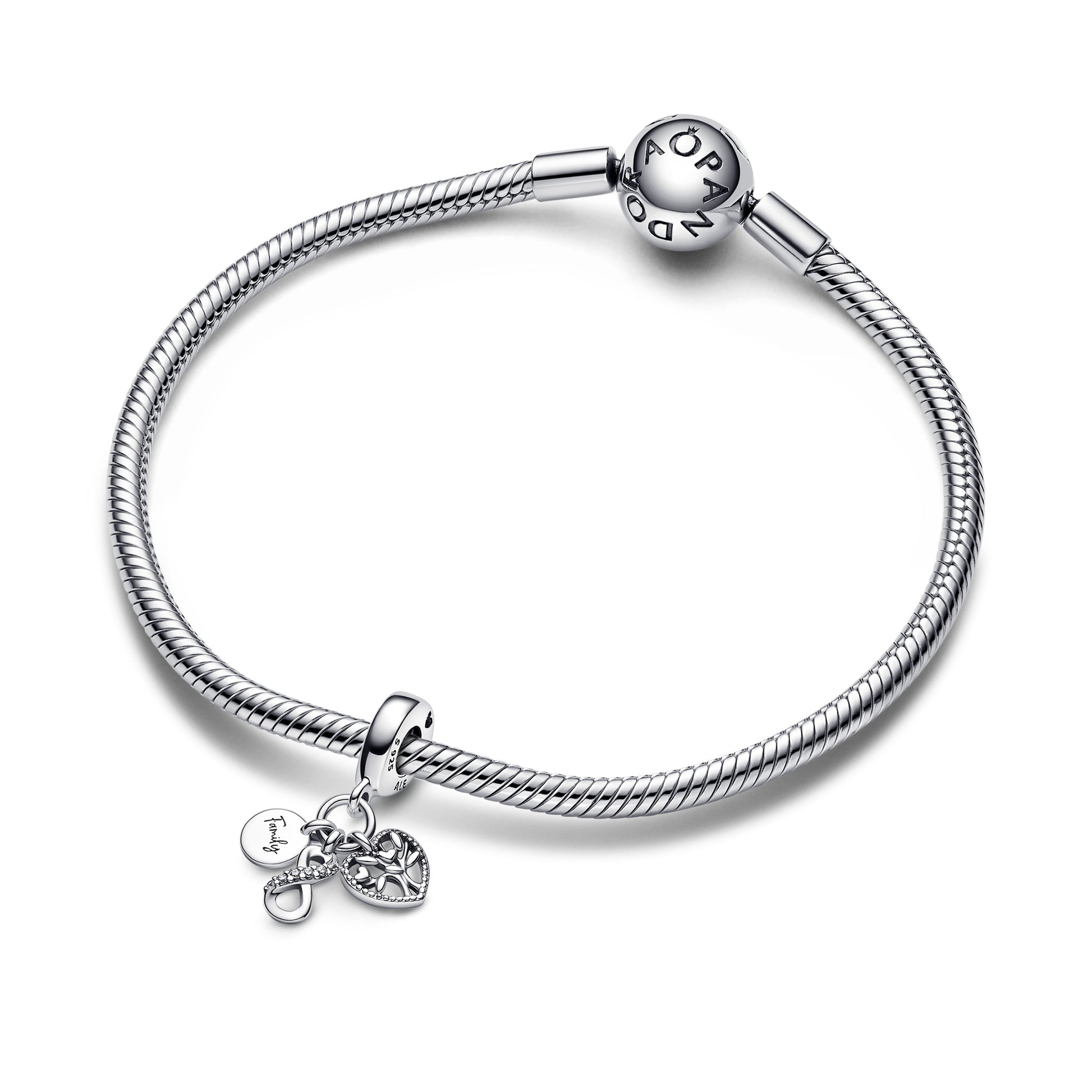 Infinity, Disc And Heart Sterling Silver Dangle With Clear Cubic Zirconia