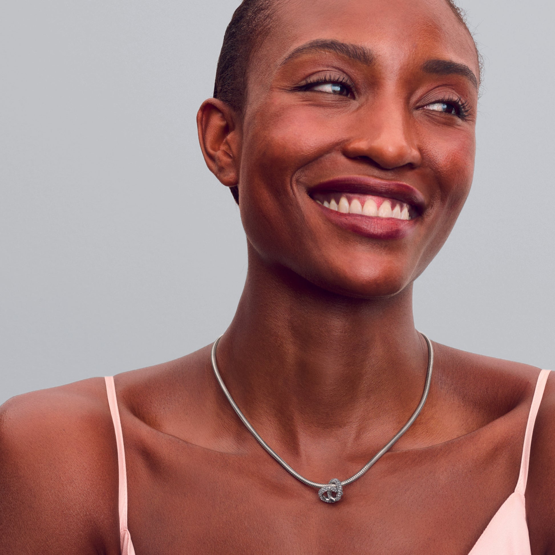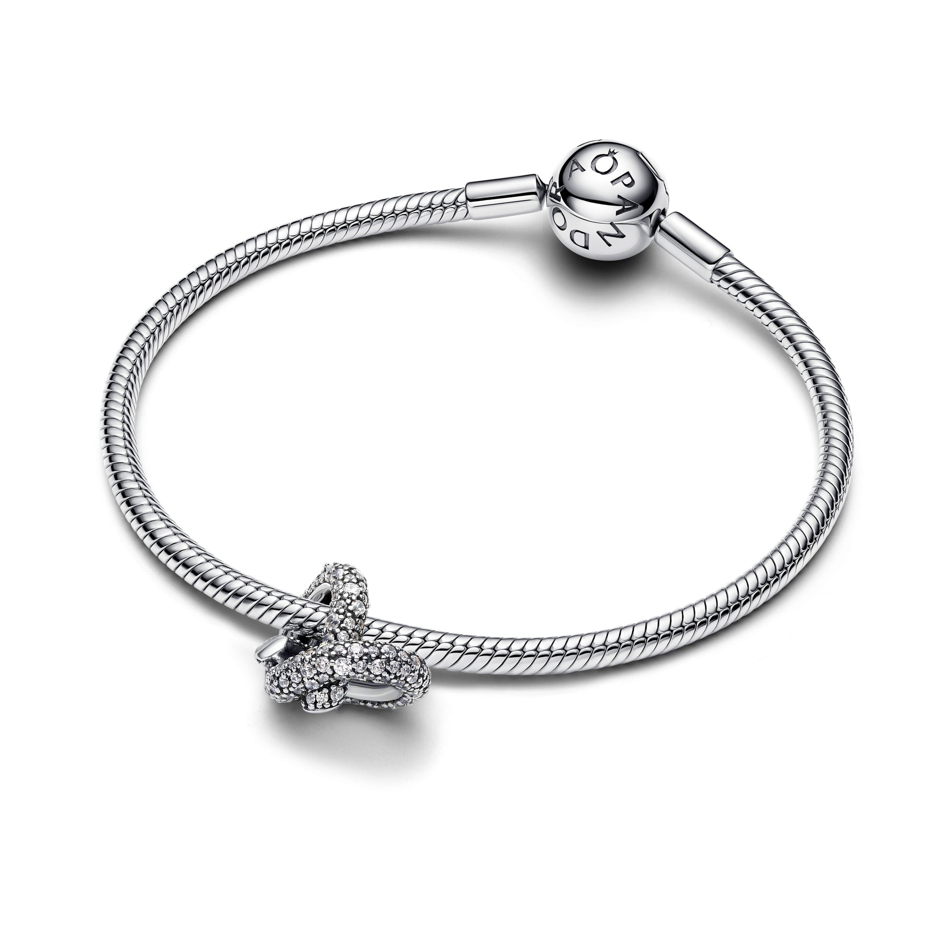 Infinity Knot Heart Sterling Silver Charm With Clear Cubic Zirconia