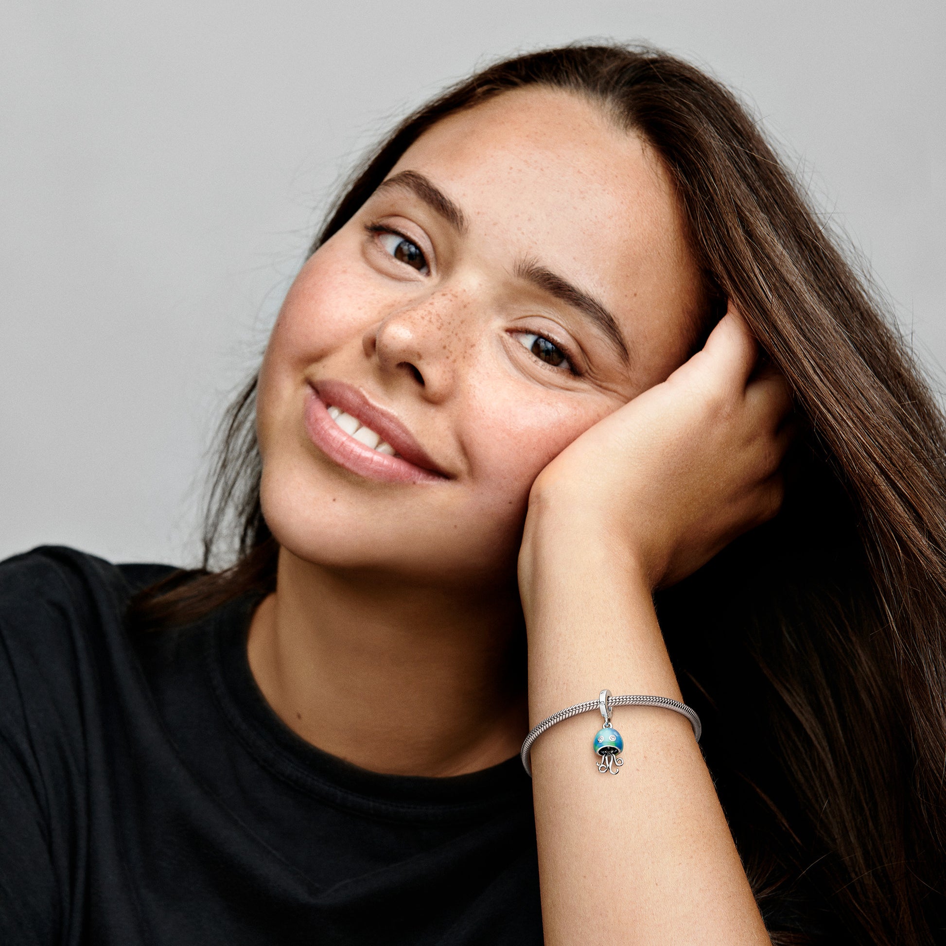 Jellyfish Sterling Silver Dangle With Clear Cubic Zirconia And Color Changing Enamel