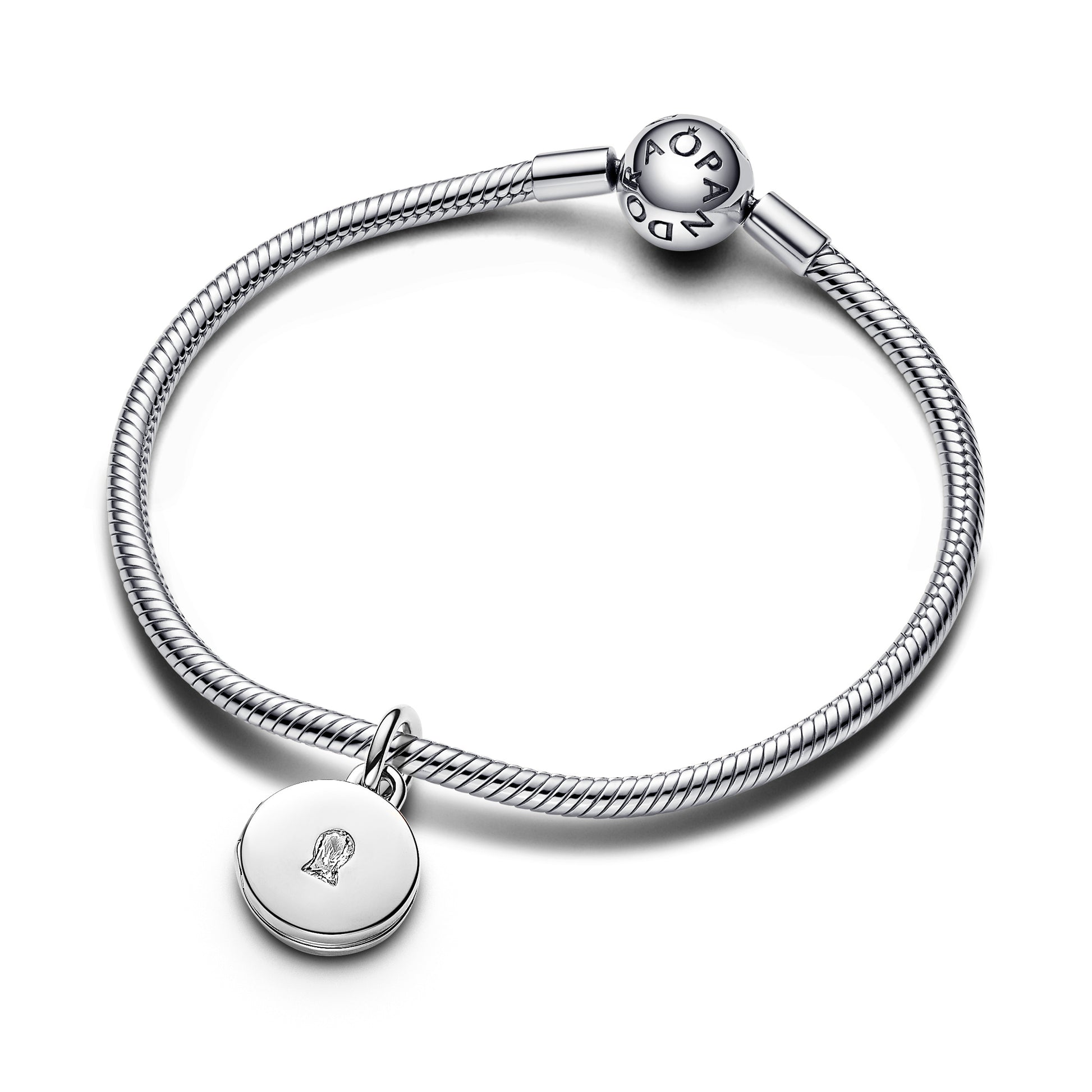 Key Hole Engravable Locket Sterling Silver Dangle With Clear Cubic Zirconia