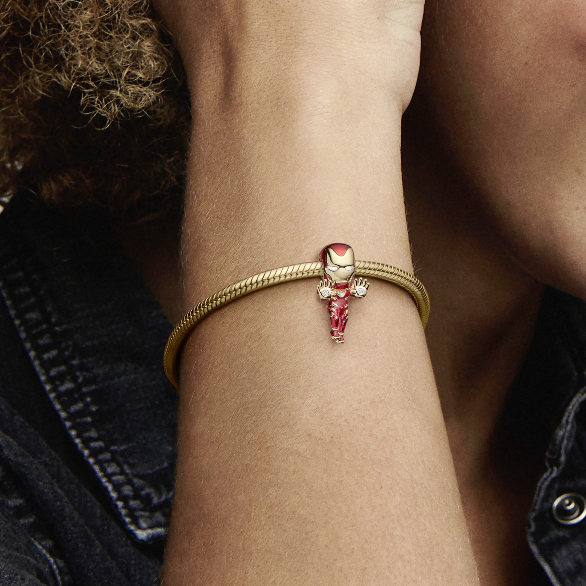 Marvel Iron Man 14K Gold-Plated Charm With Clear Cubic Zirconia, Red, Black And White Enamel