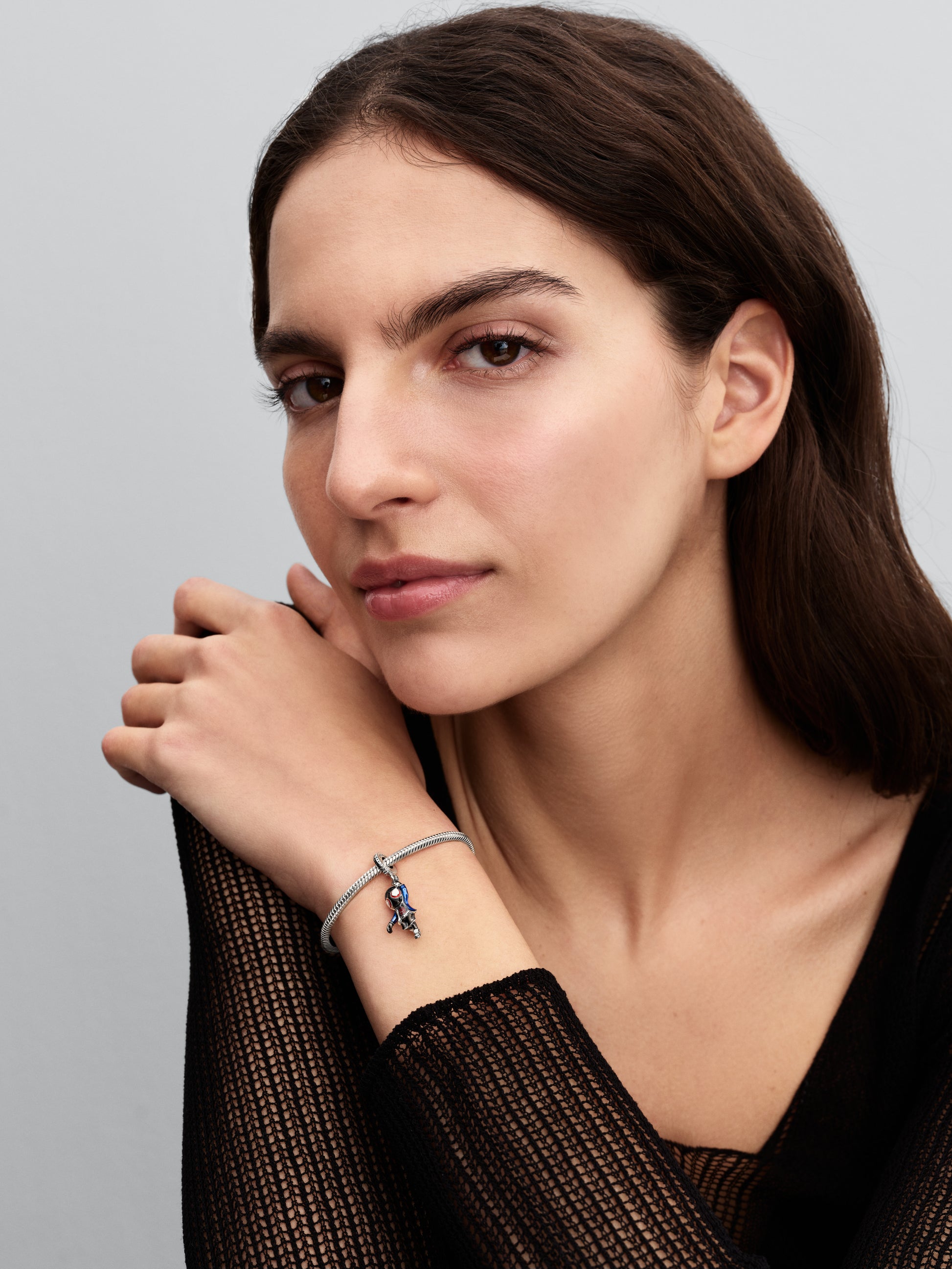 Marvel Spider-Man Miles Morales Sterling Silver Dangle With Red, Blue, White And Black Enamel