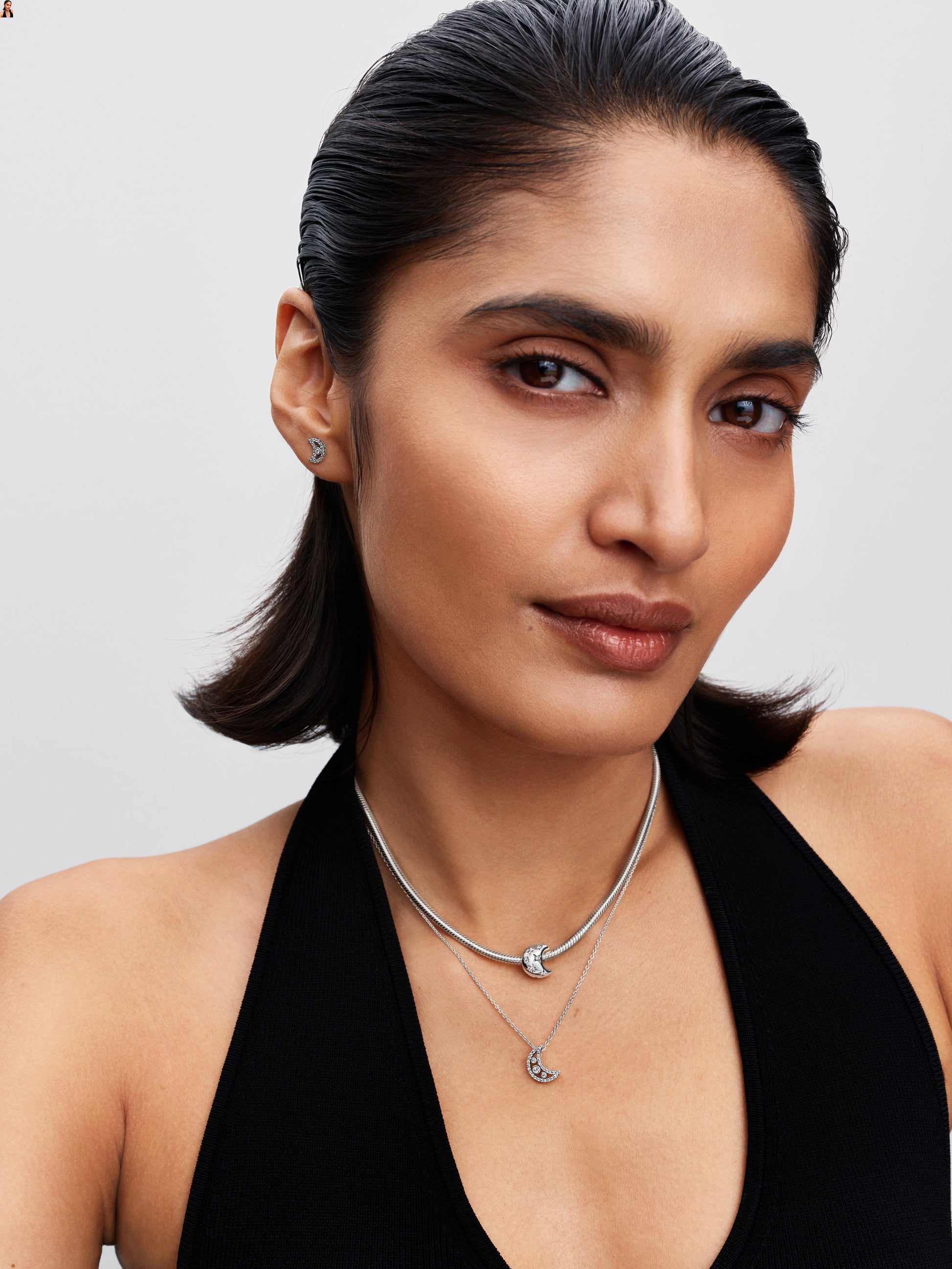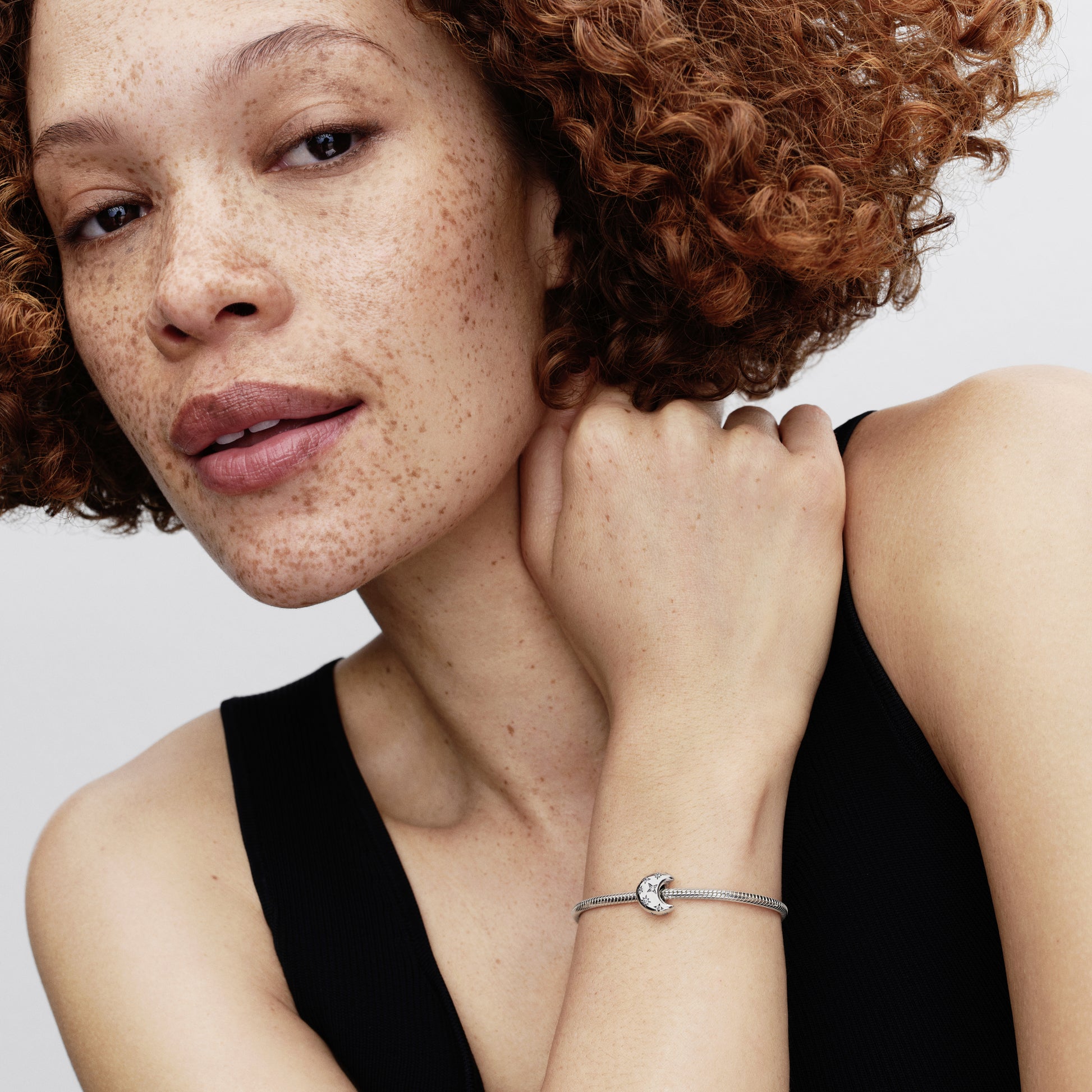Moon Sterling Silver Charm With Clear Cubic Zirconia