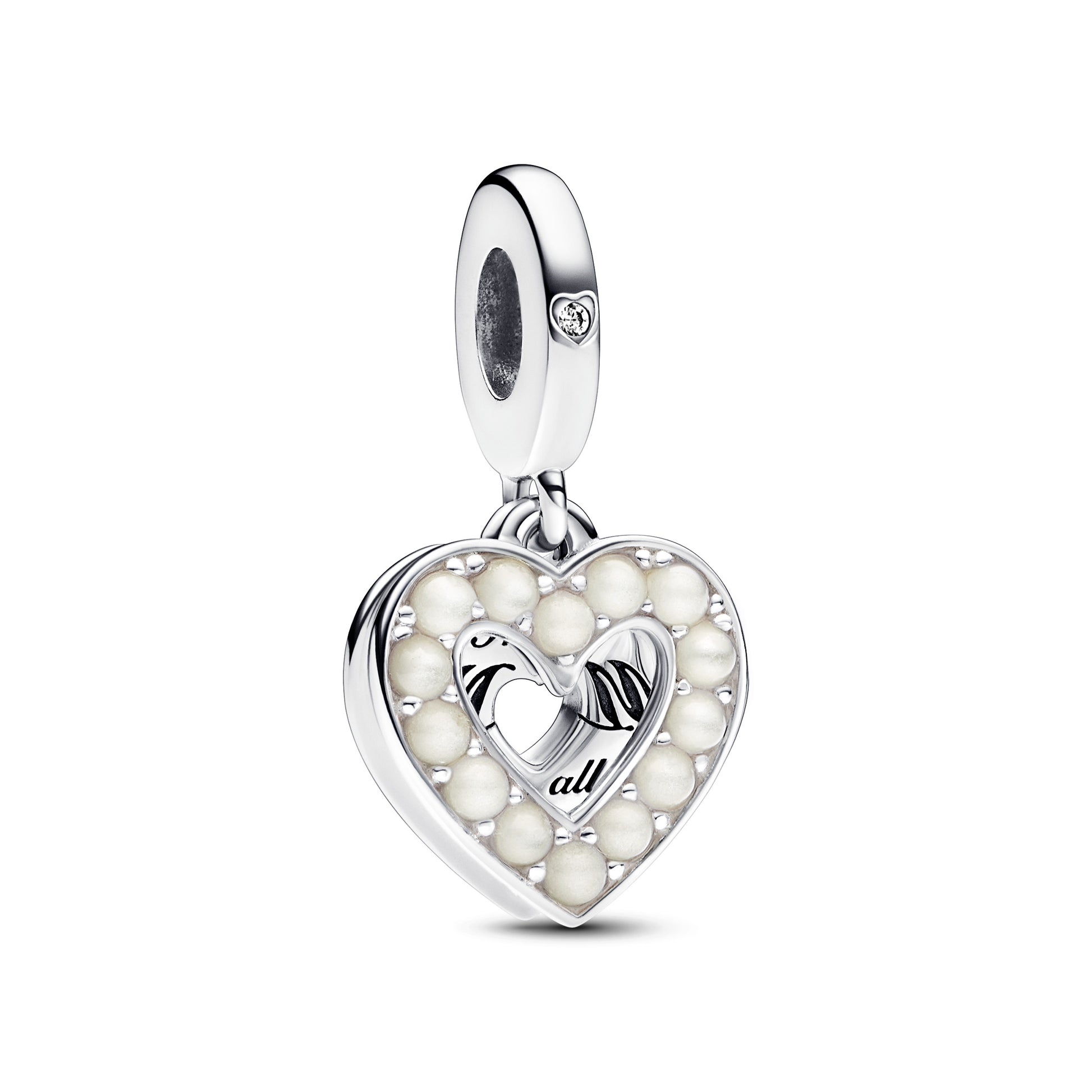 Mum Heart Sterling Silver Double Dangle With Bioresin Man-Made Mother Of Pearl And Clear Cubic Zirconia