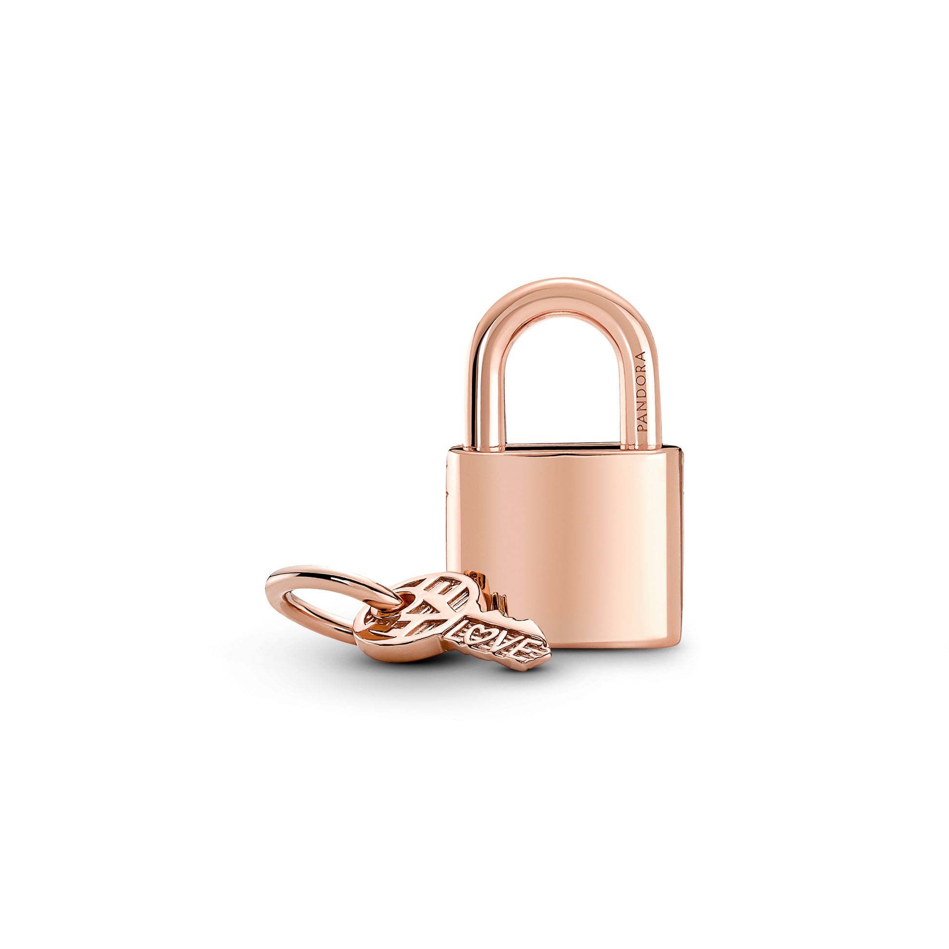 Padlock And Key 14K Rose Gold-Plated Dangle With Clear Cubic Zirconia