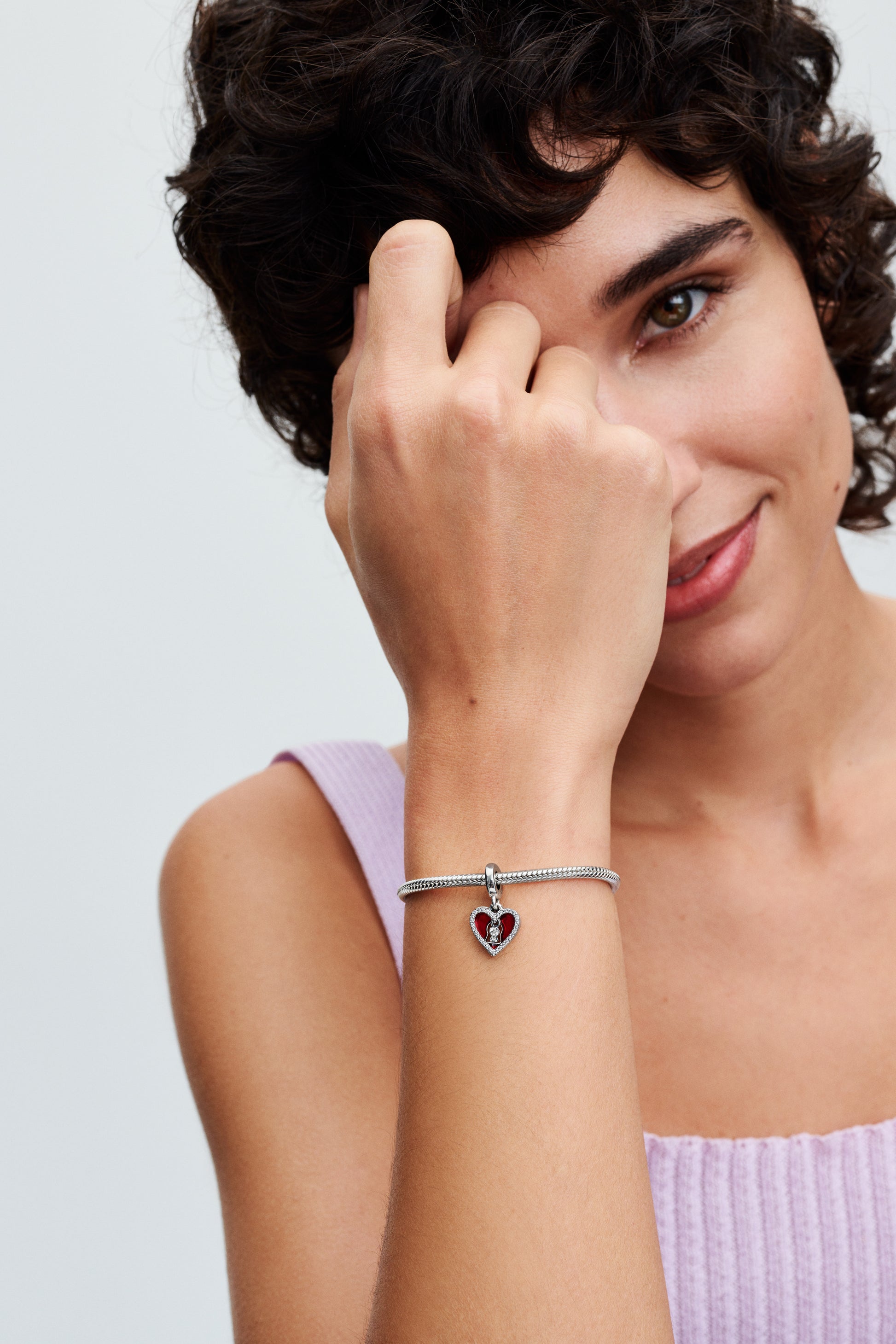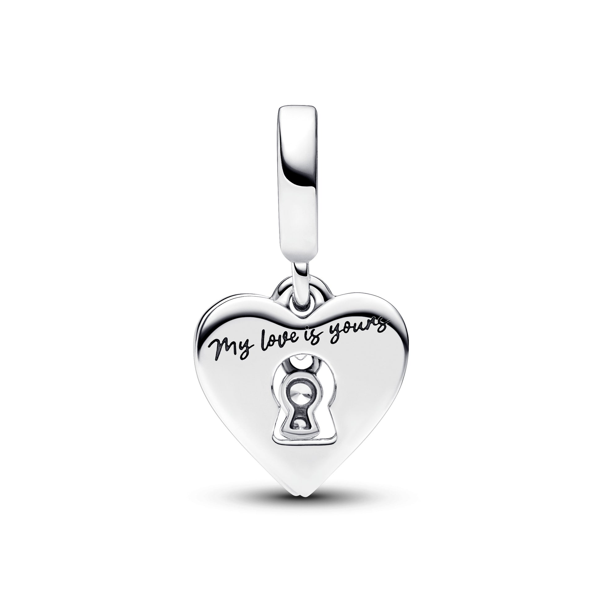 Padlock Heart Sterling Silver Double Dangle With Clear Cubic Zirconia And Red Enamel