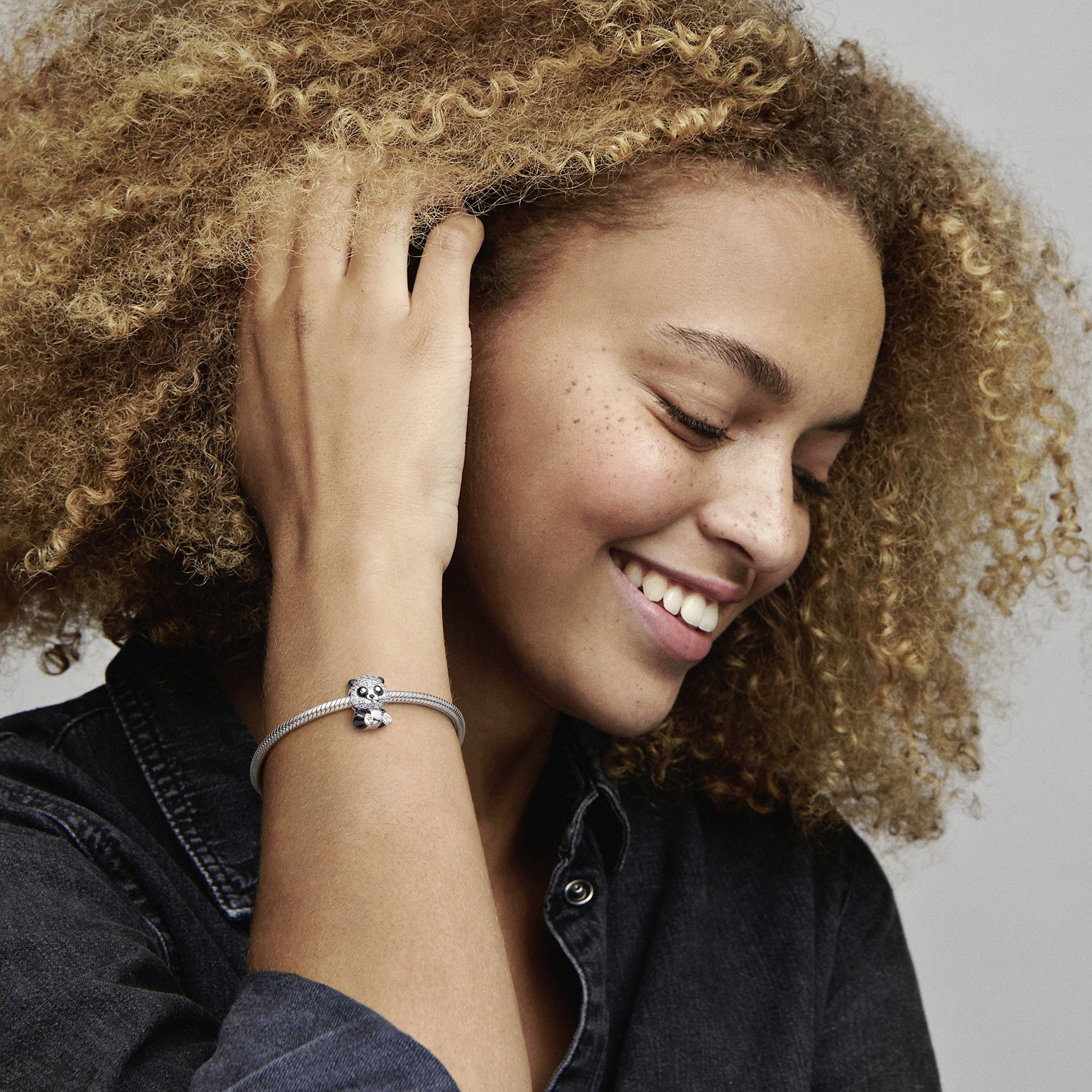 Panda Sterling Silver Charm With Clear Cubic Zirconia And Black Enamel