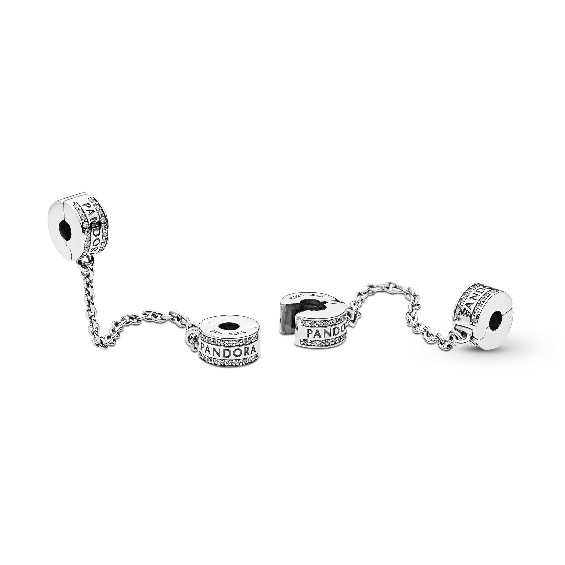 Pandora Logo Silver Safety Chain With Clear Cubic Zirconia And Silicone