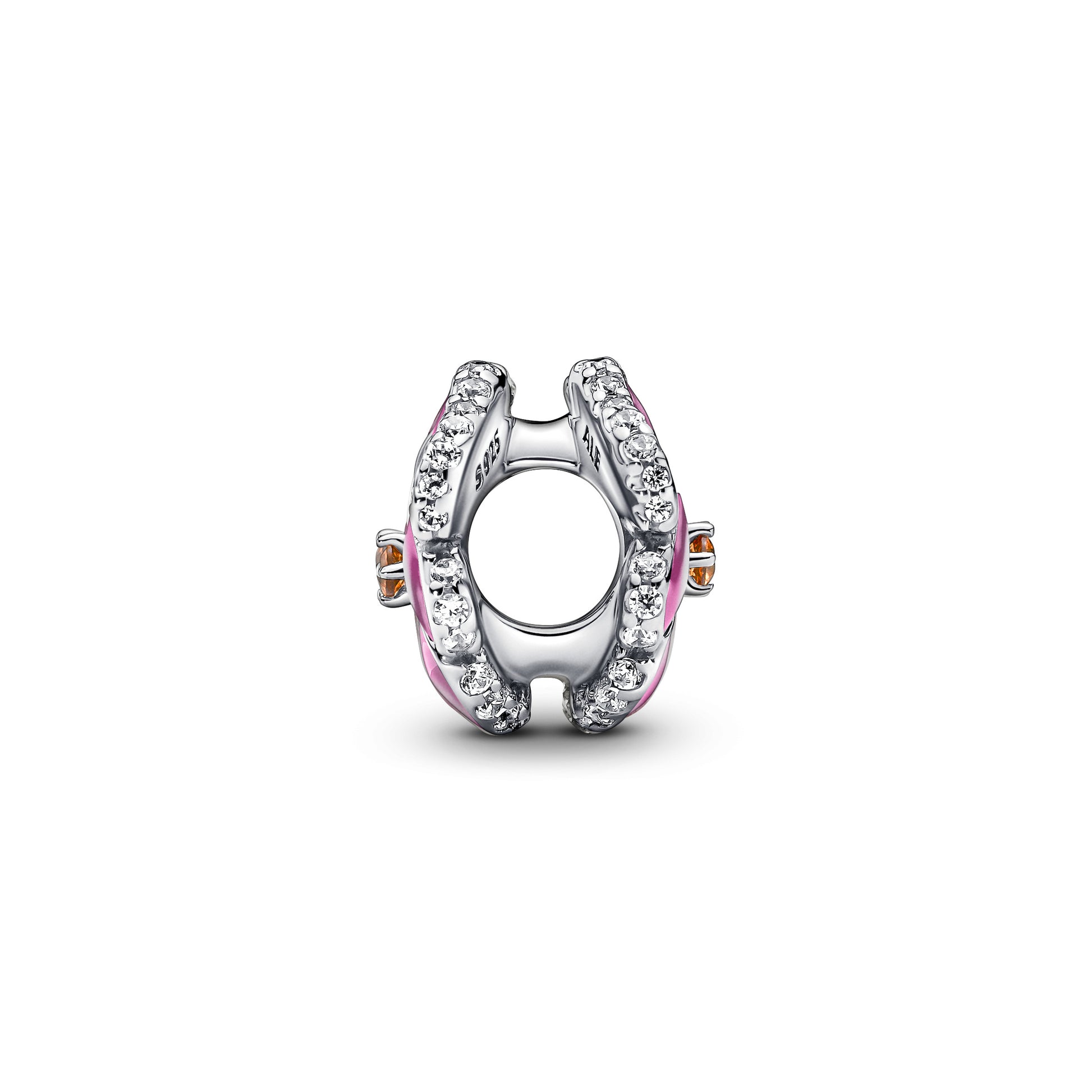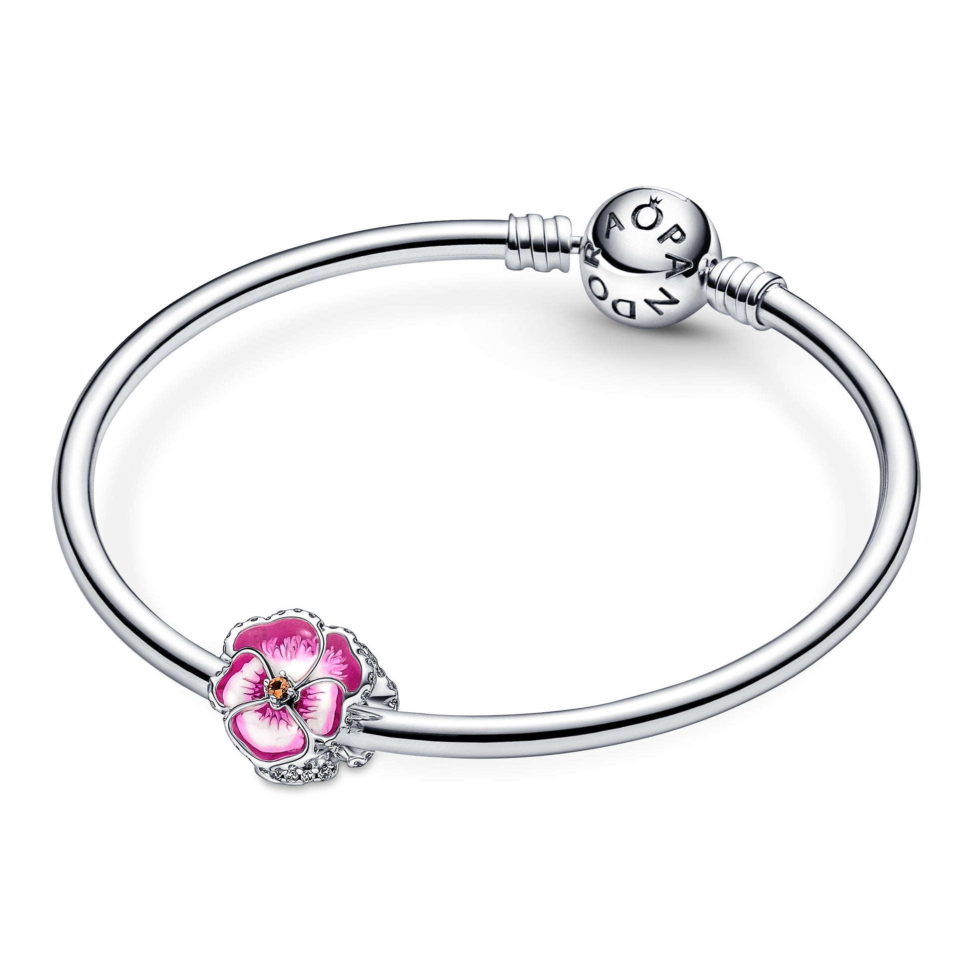Pansy Sterling Silver Charm With Clear Cubic Zirconia, Burnt Orange Crystal, Shaded Pink And White Enamel