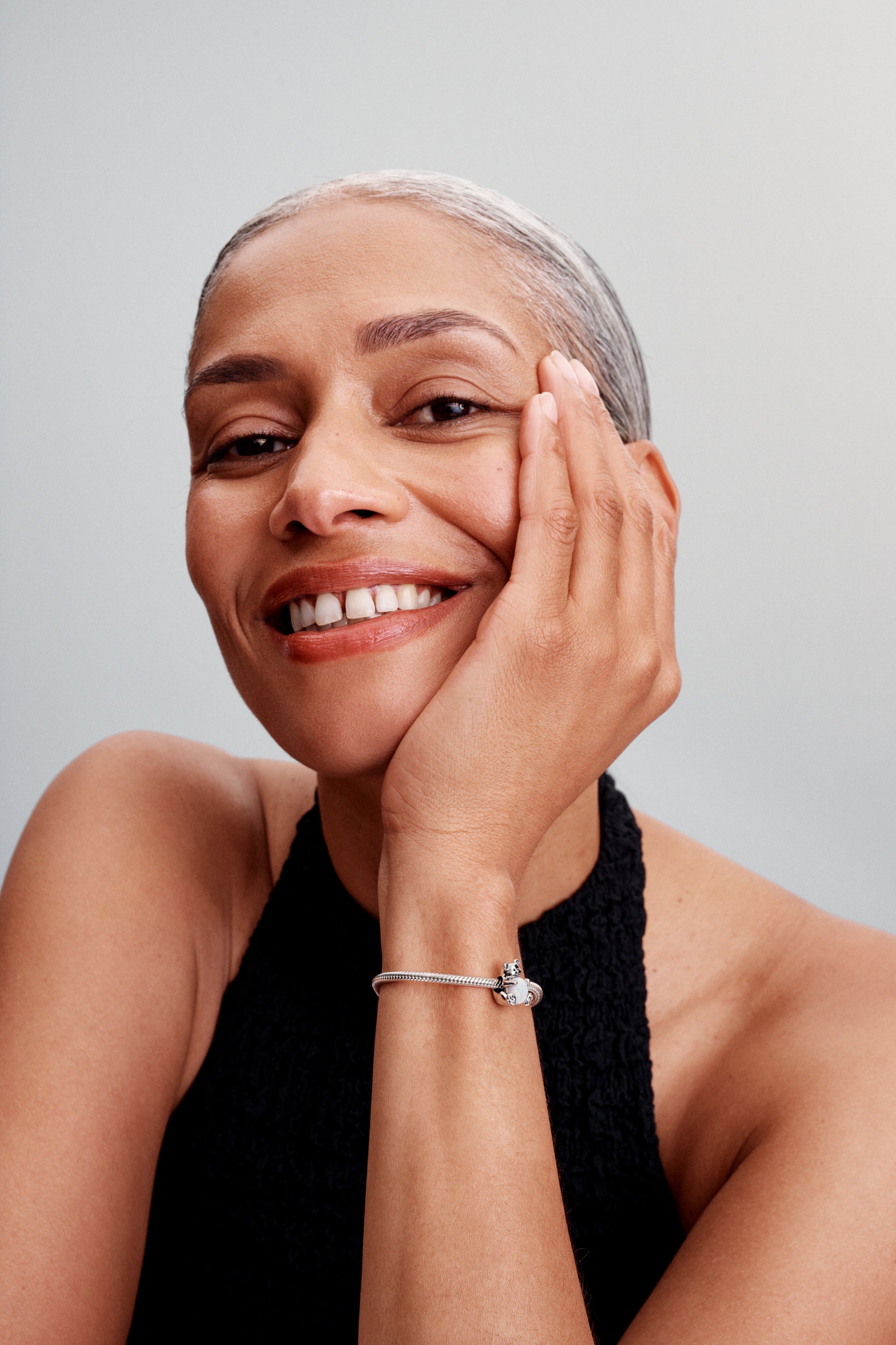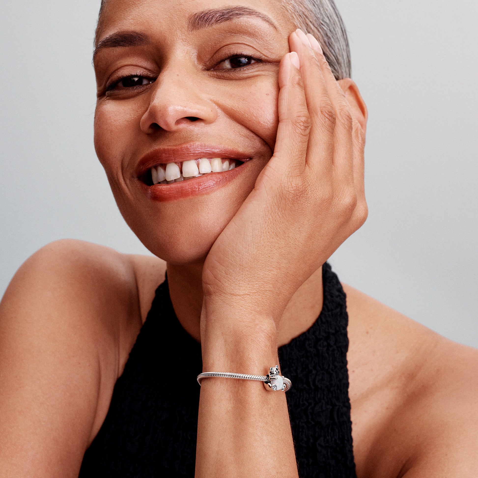 Polar Bear Sterling Silver Charm With White Lab-Created Opal And Black Enamel
