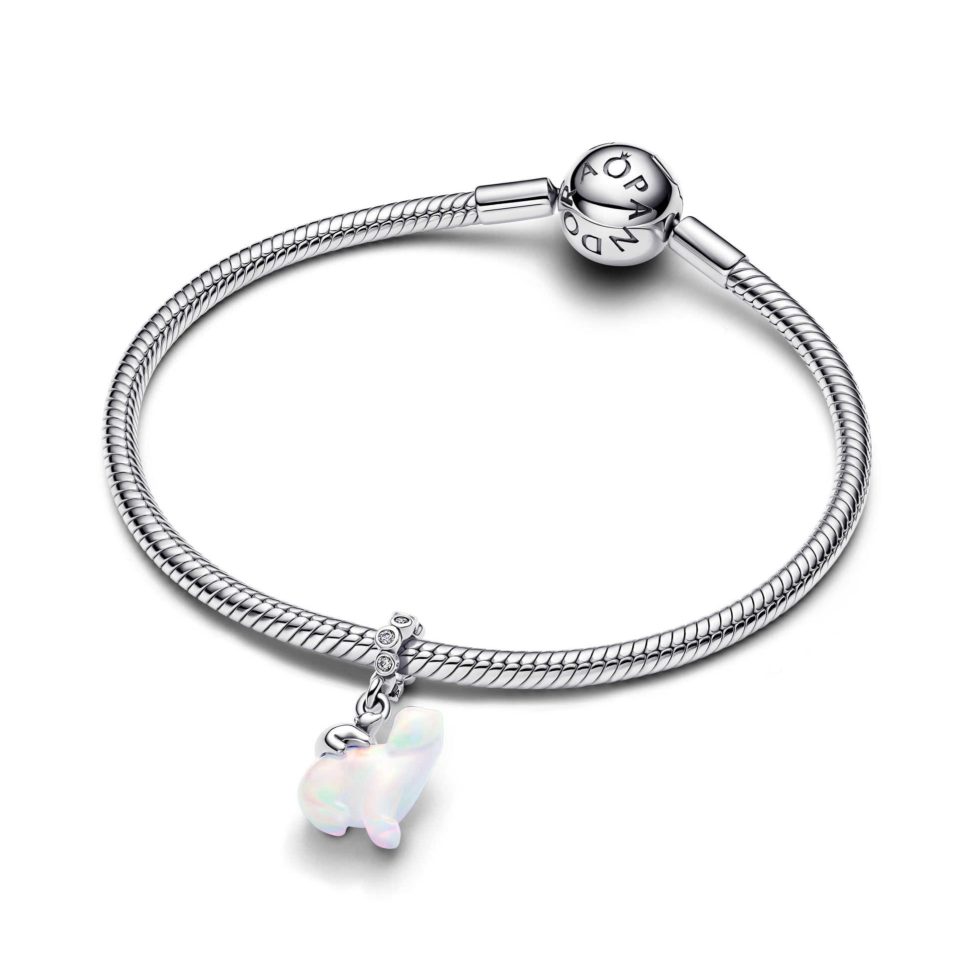 Polarbears Sterling Silver Dangle With Clear Cubic Zirconia And Aurora Lab-Grown Opal Resin