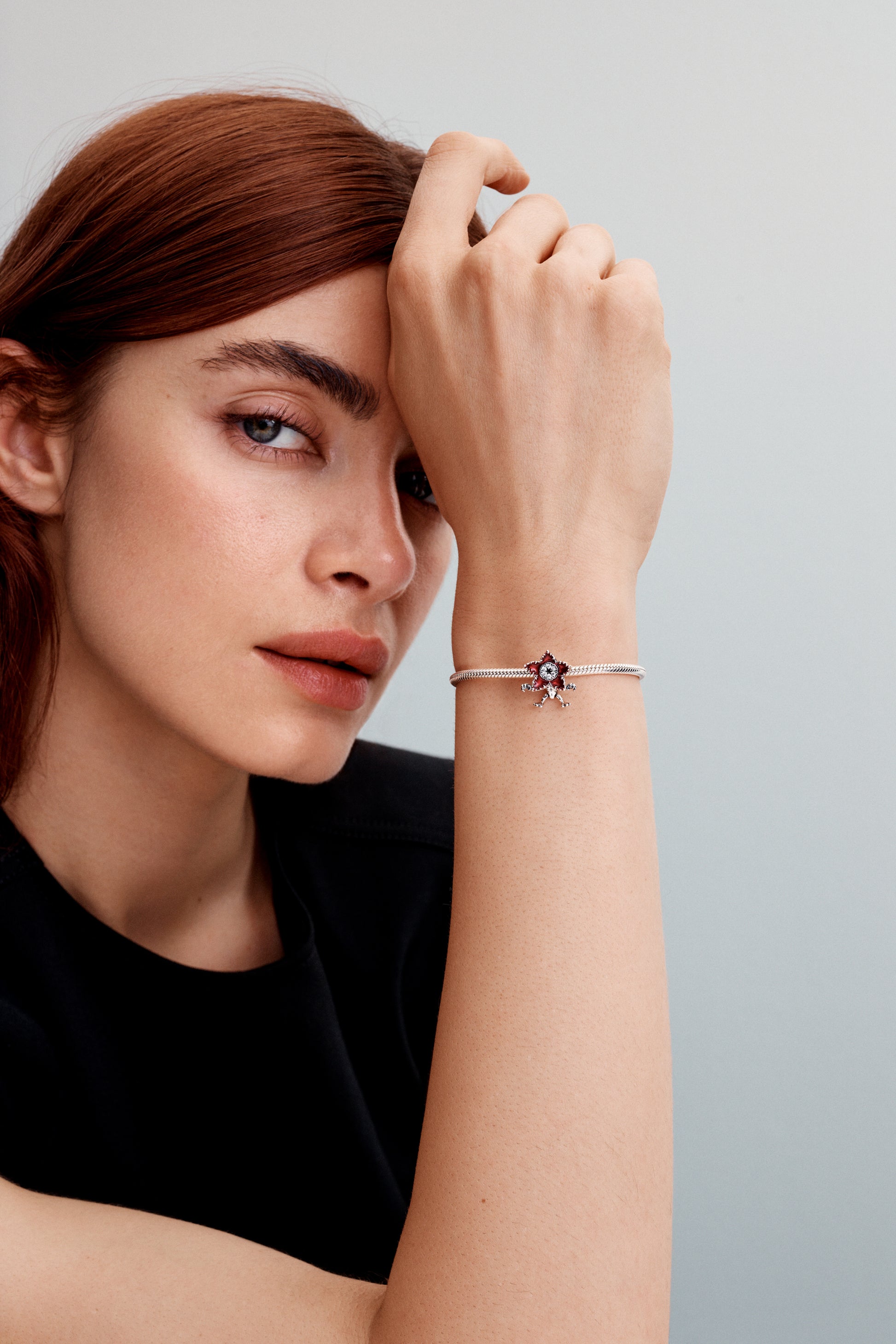 Project Red Sterling Silver Charm With Clear Cubic Zirconia, Black And Pearlescent Red Enamel