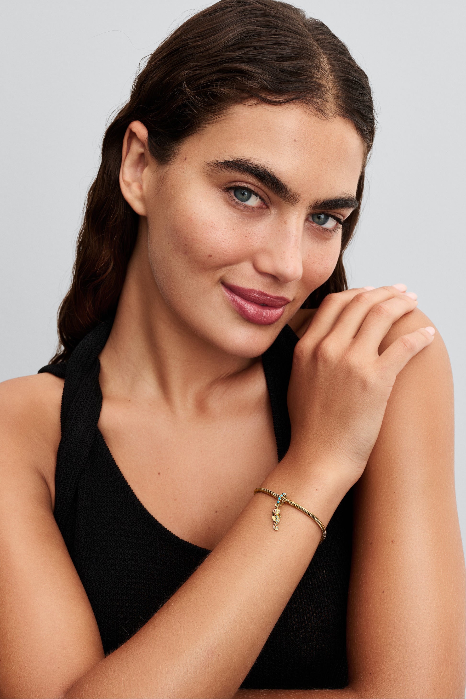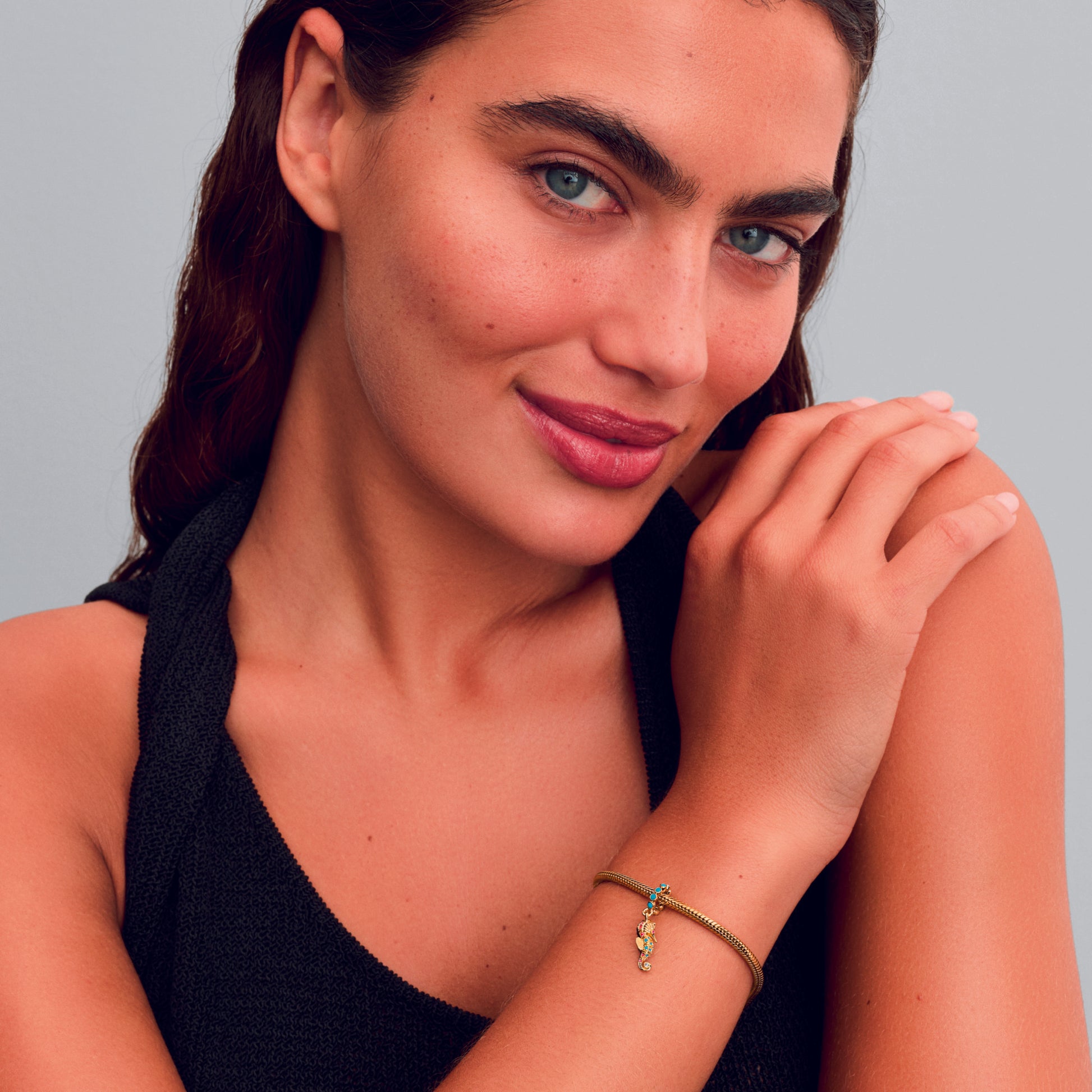 Seahorse 14K Gold-Plated Dangle With Clear Cubic Zirconia, Capri Blue Crystal And Phlox Pink Crystal