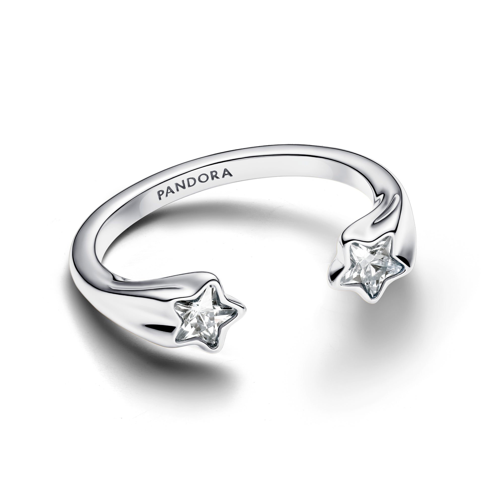 Shooting Star Sterling Silver Open Ring With Clear Cubic Zirconia