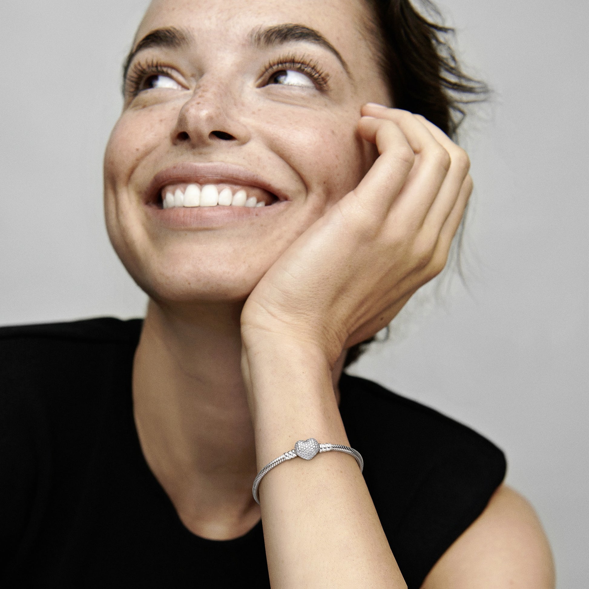 Silver Bracelet With Heart-Shaped Clasp And Cubic Zirconia