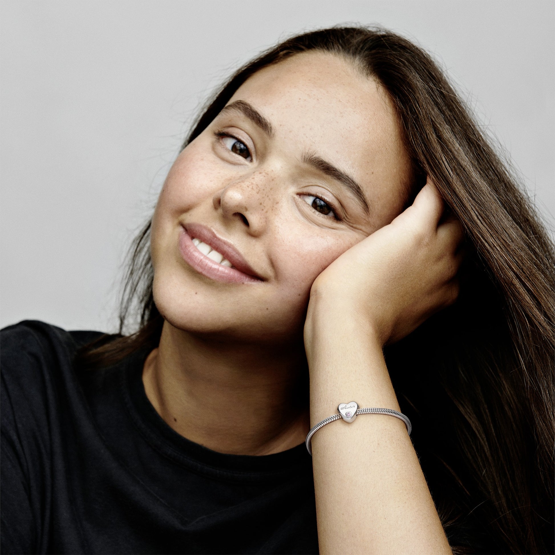Sister Heart Silver Charm With Pink Cubic Zirconia