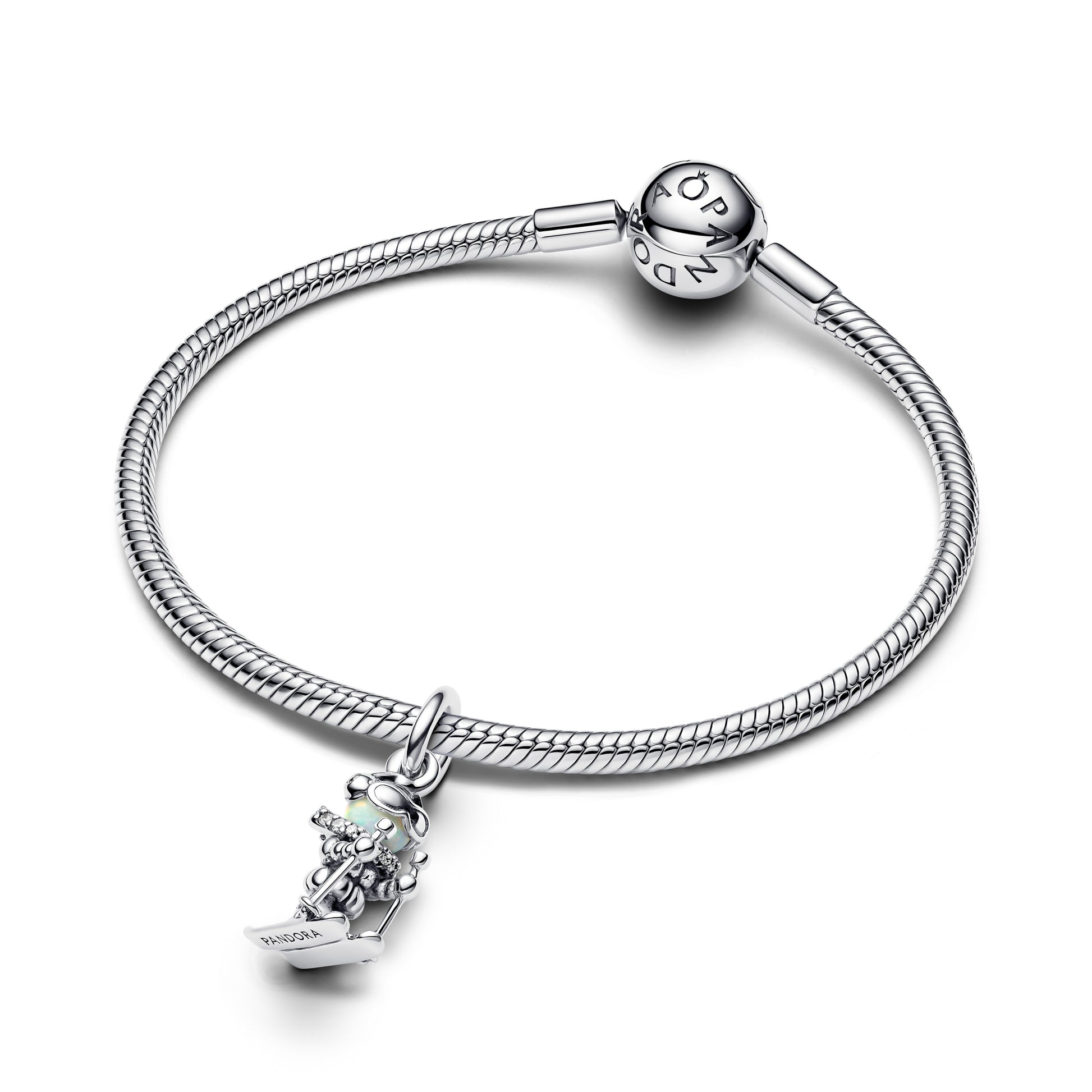Skier Sterling Silver Dangle With White Lab-Created Opal And Clear Cubic Zirconia