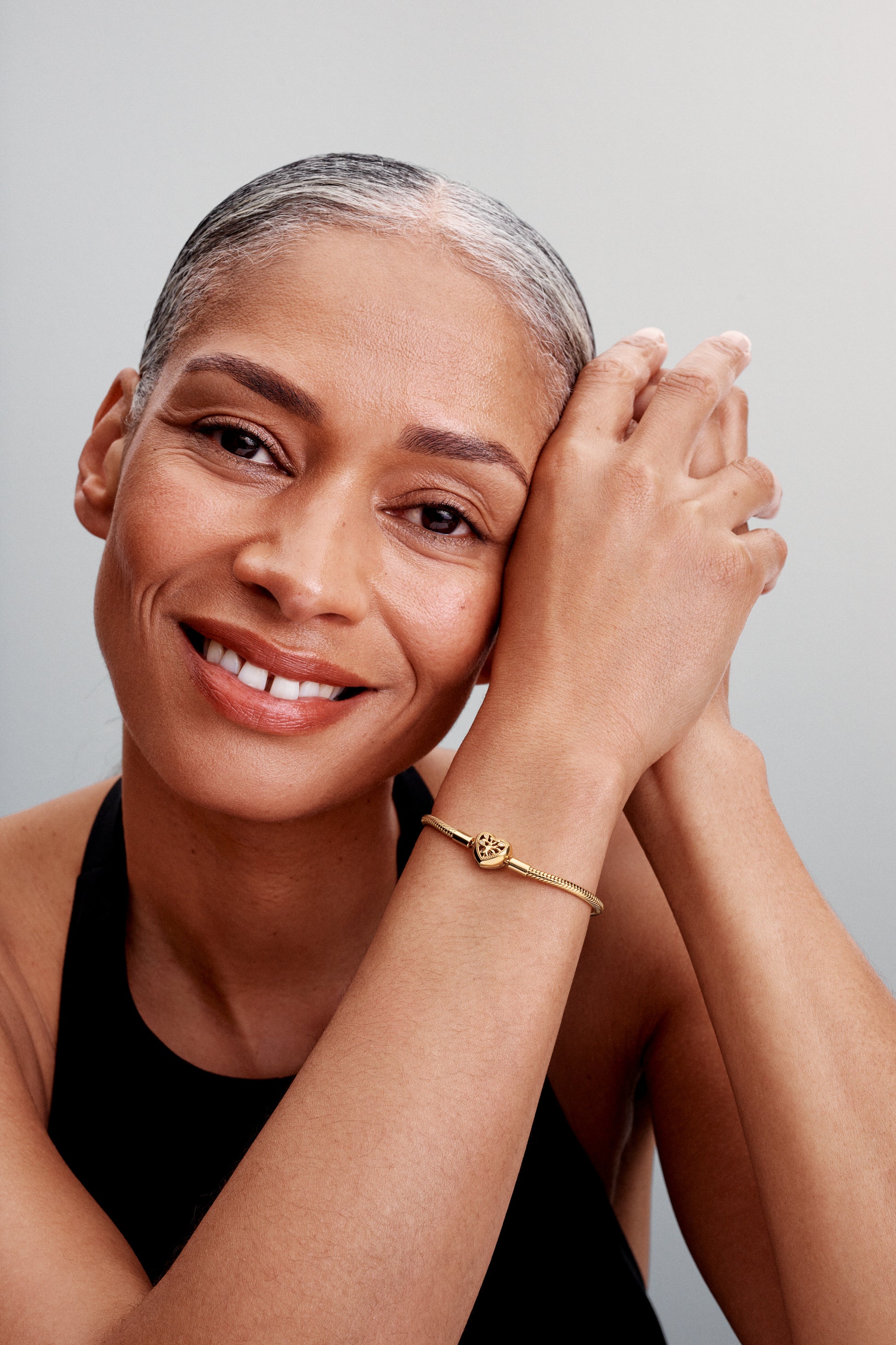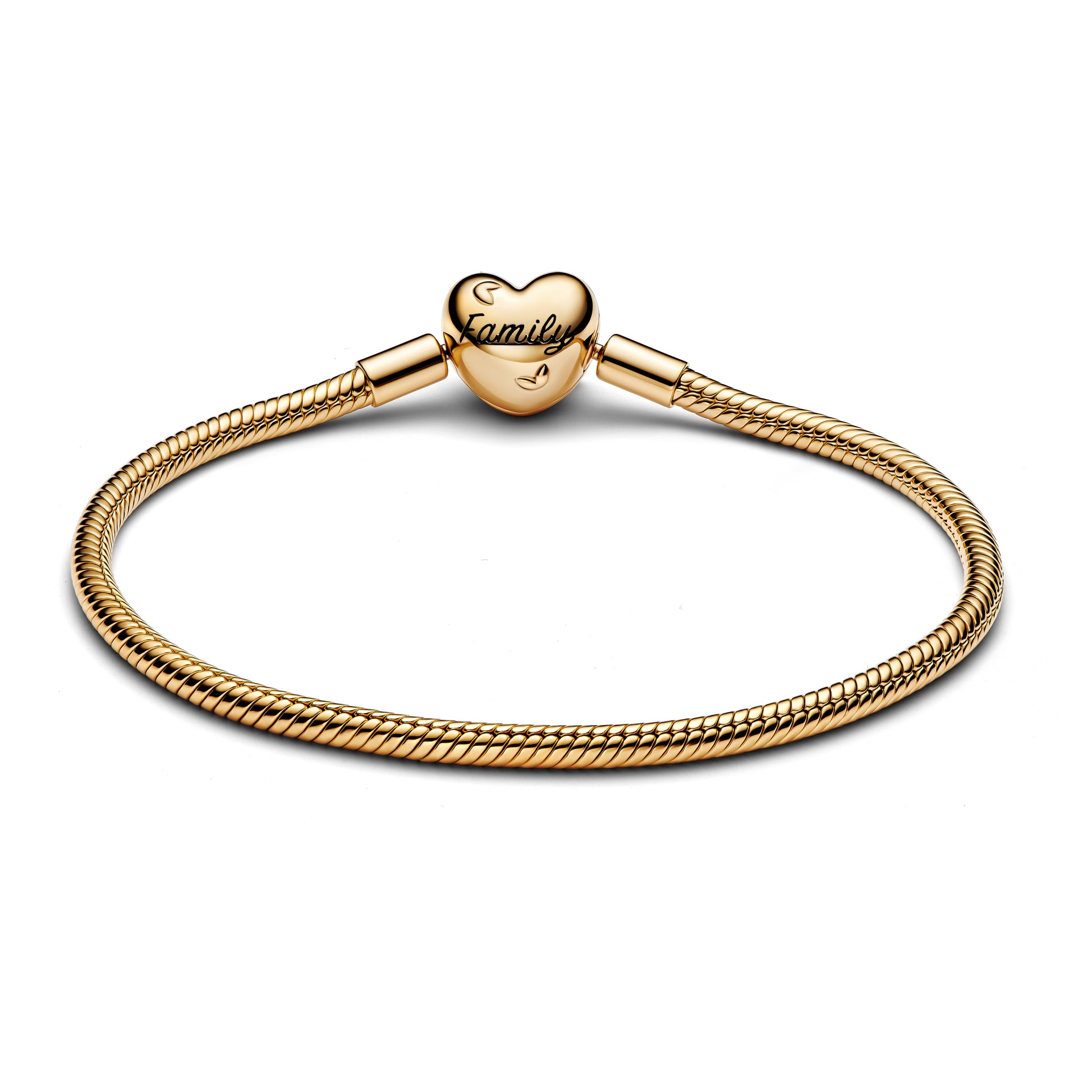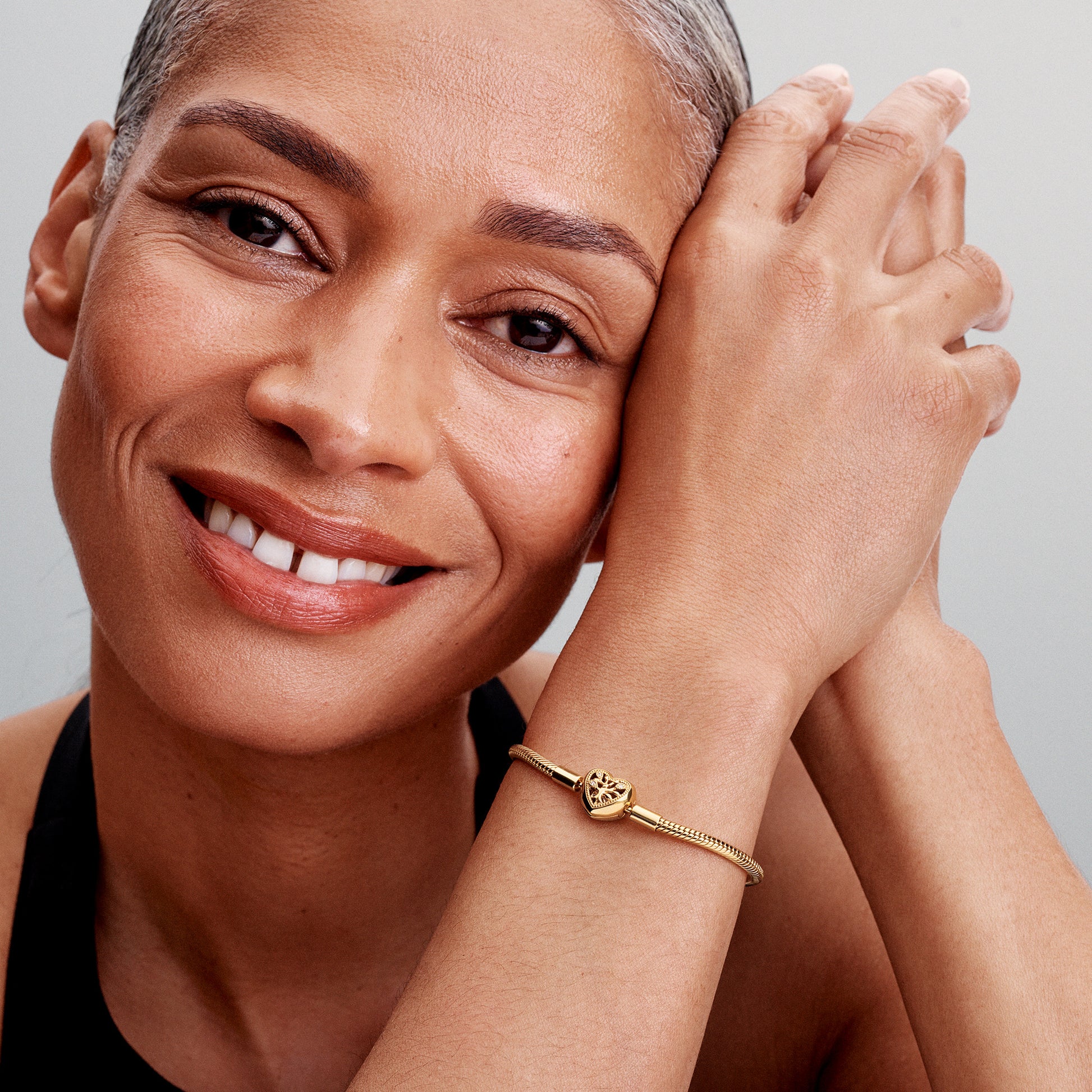 Snake Chain 14K Gold-Plated Bracelet And Heart Clasp With Clear Cubic Zirconia And Black Enamel