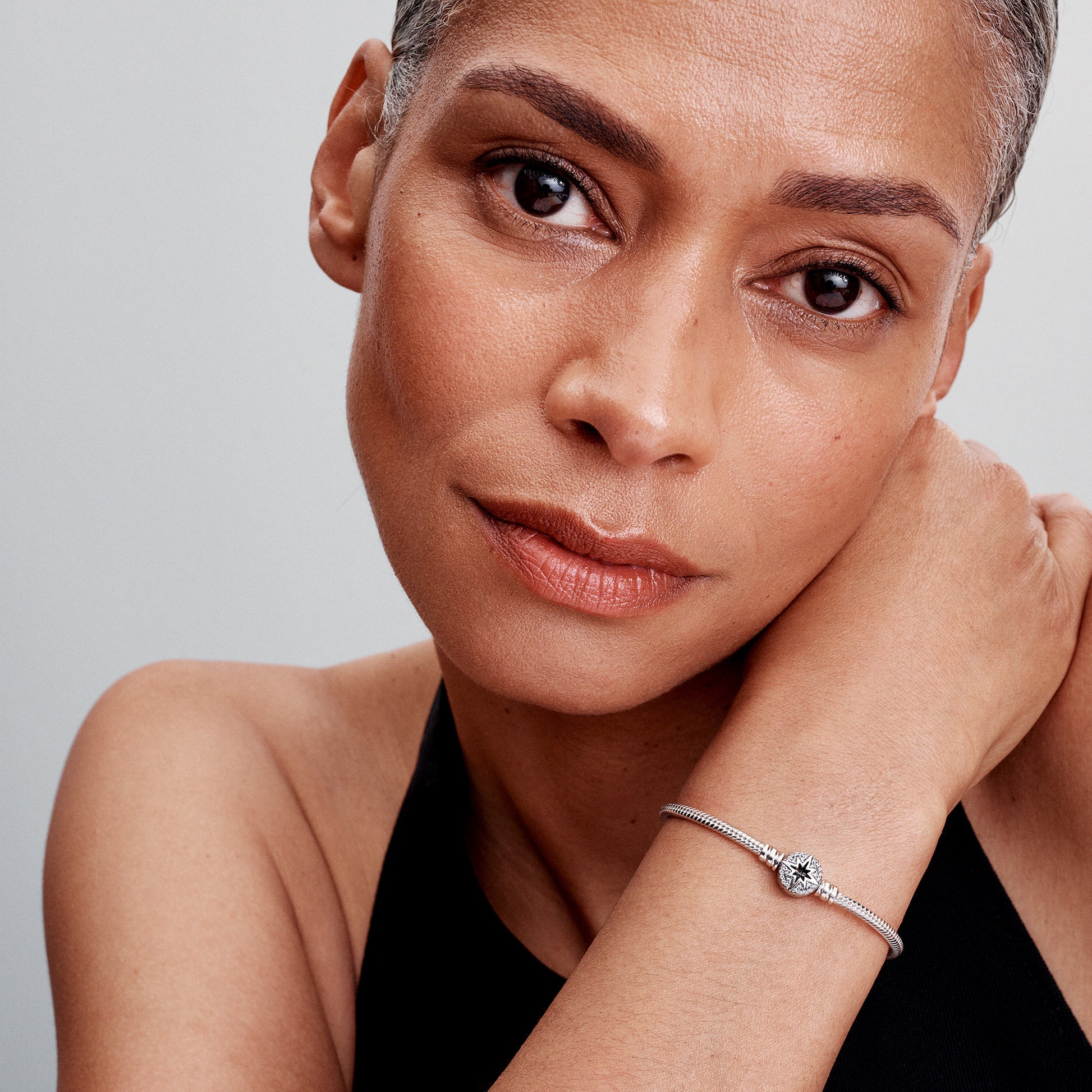 Snake Chain Sterling Silver Bracelet With North Star Clasp And Clear Cubic Zirconia