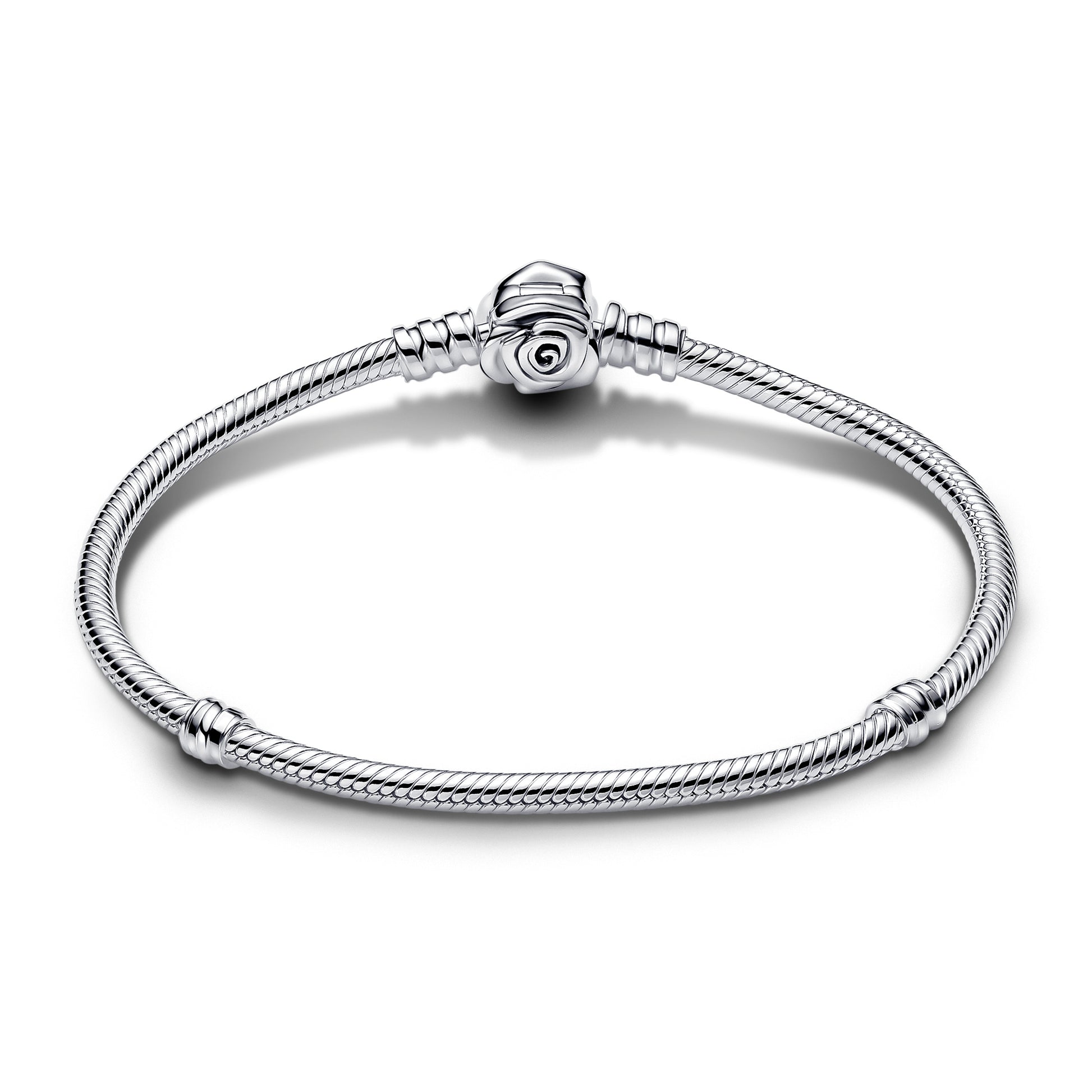 Snake Chain Sterling Silver Bracelet With Rose Clasp