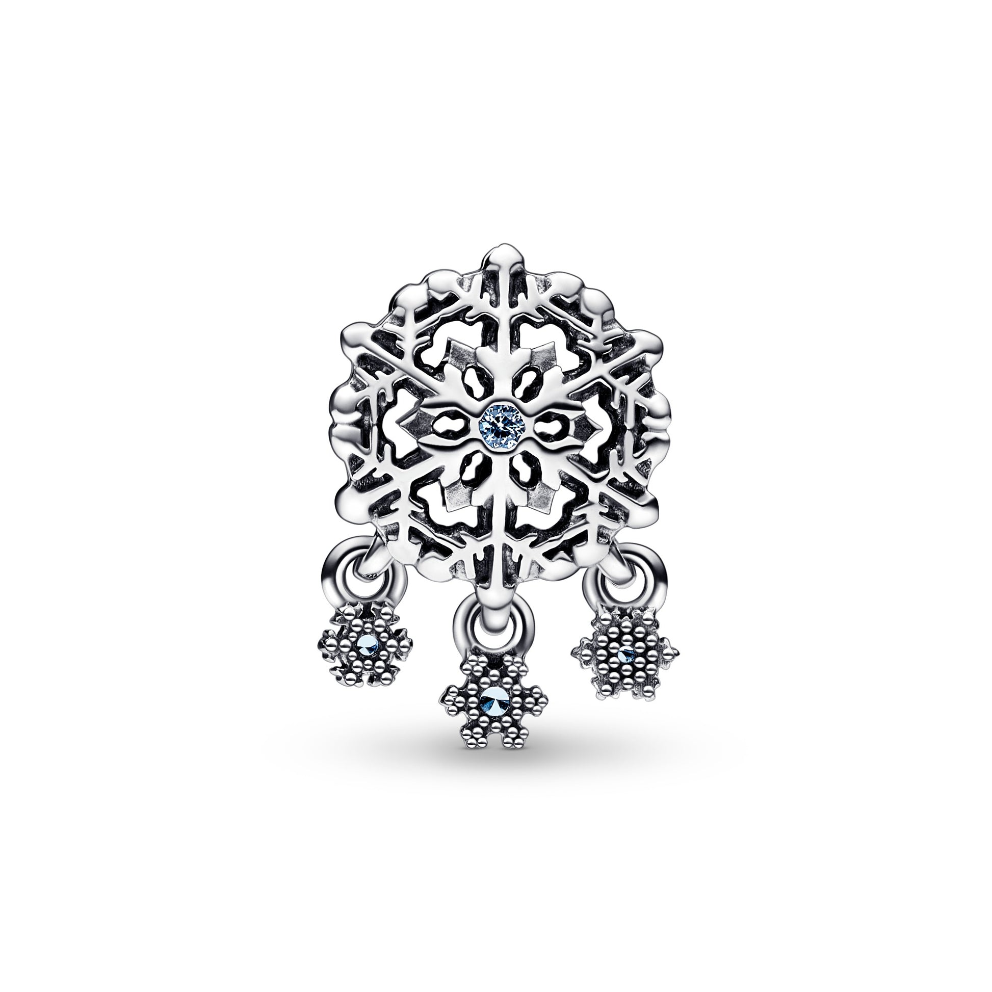 Snowflake Sterling Silver Charm With Bleached Aqua Blue Crystal And Icy Blue Crystal
