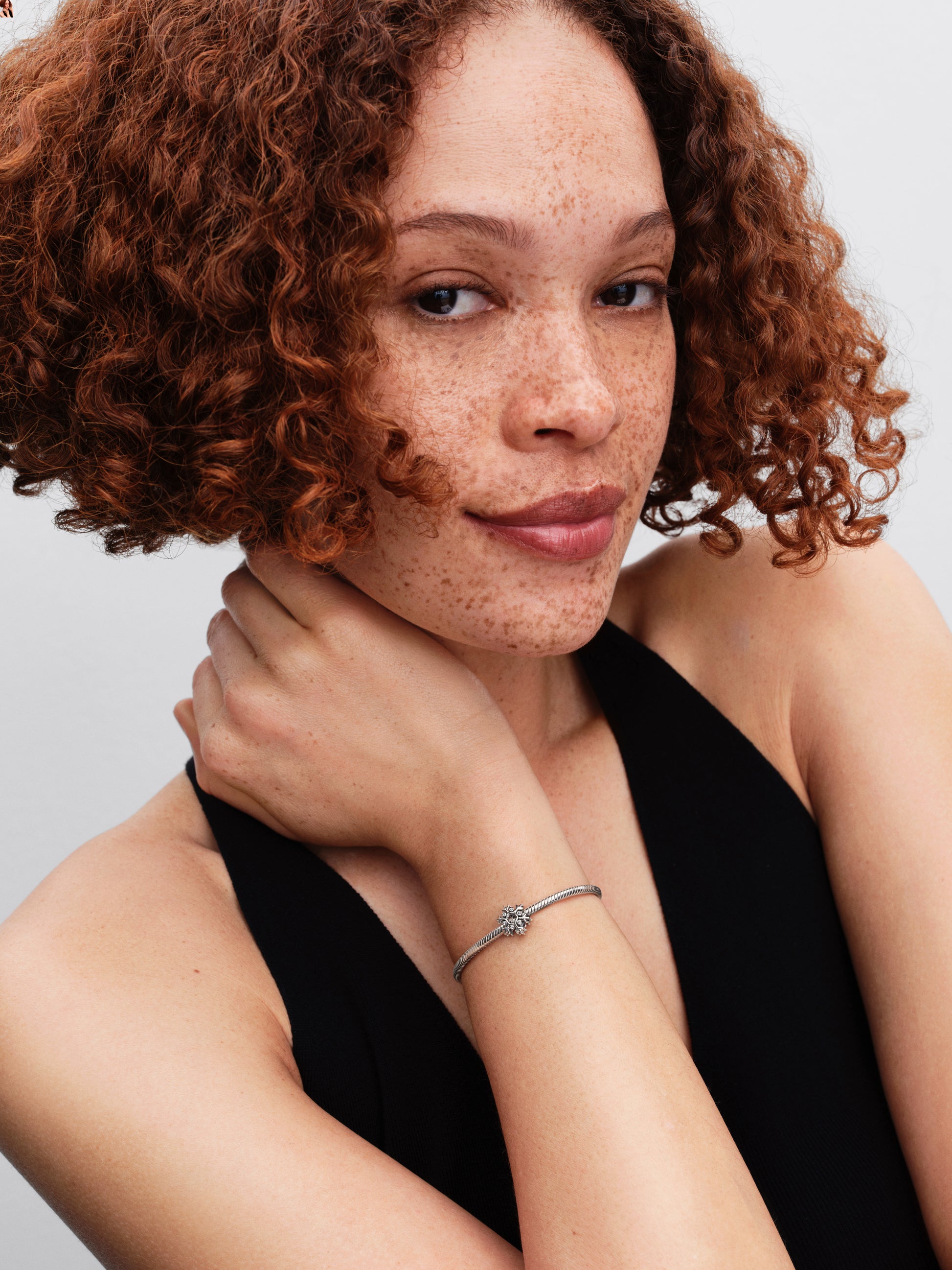 Snowflake Sterling Silver Charm With Clear Cubic Zirconia