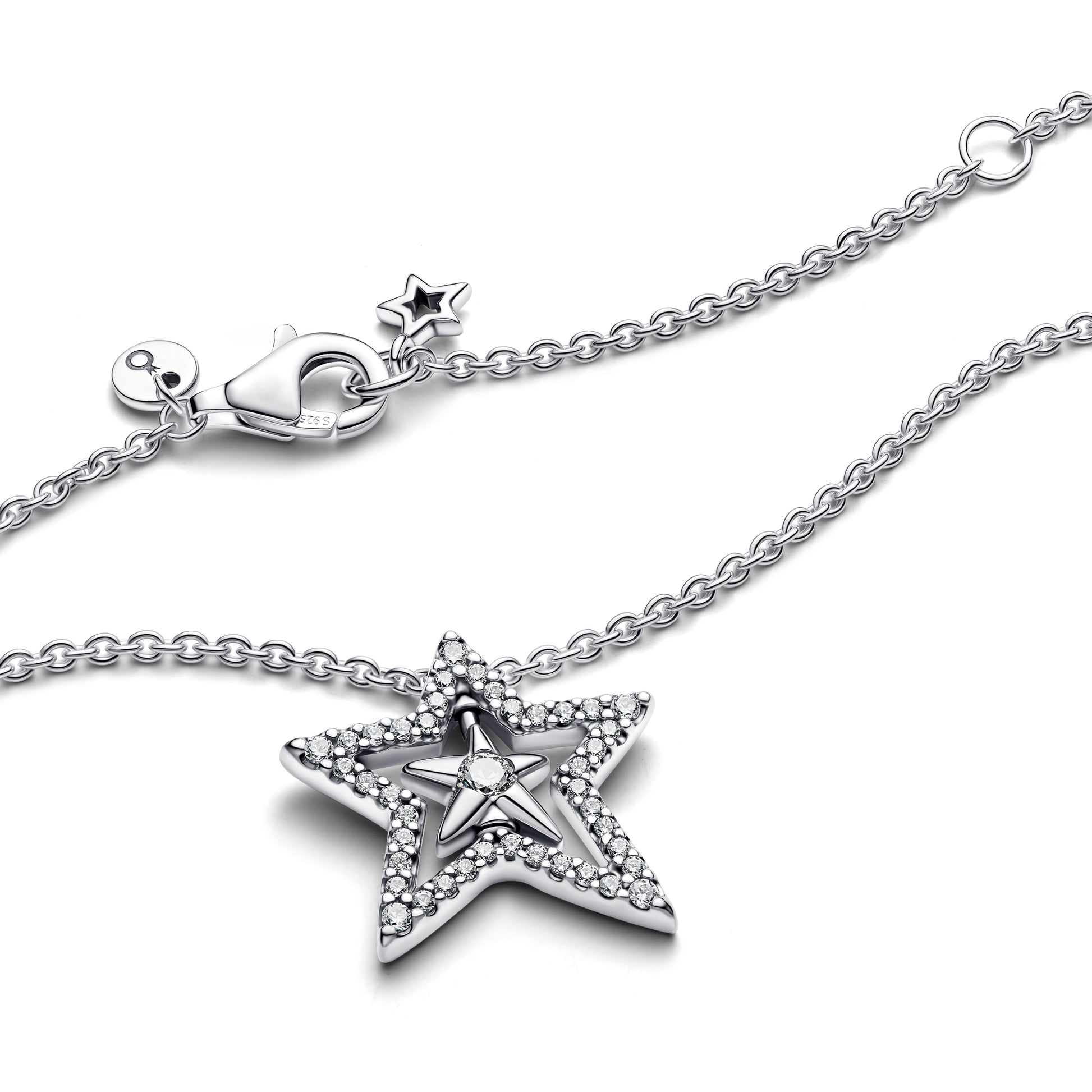 Spinning Star Sterling Silver Collier With Clear Cubic Zirconia