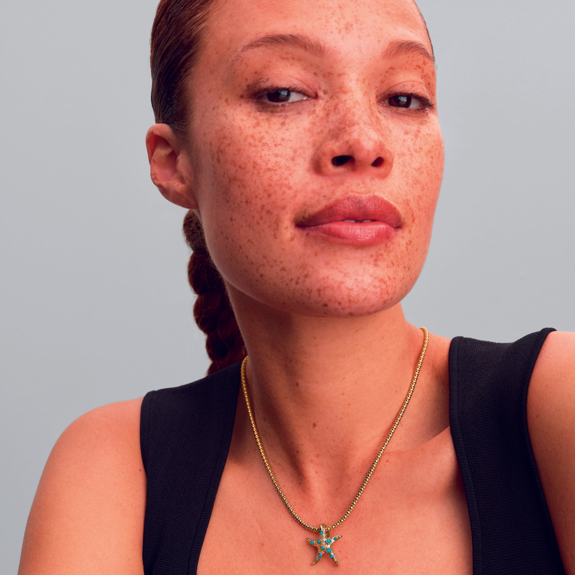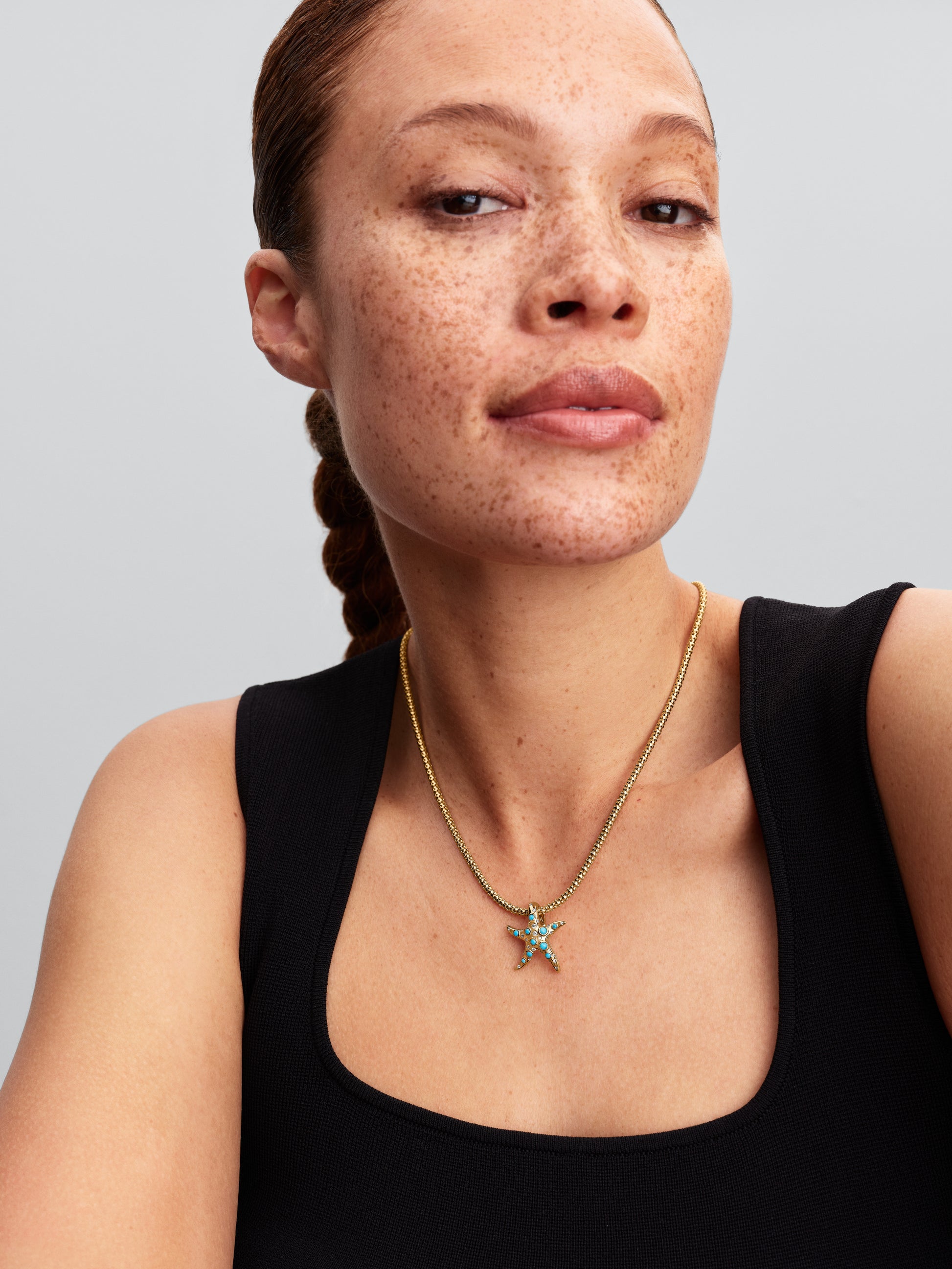 Starfish 14K Gold-Plated Dangle With Clear Cubic Zirconia And Capri Blue Crystal