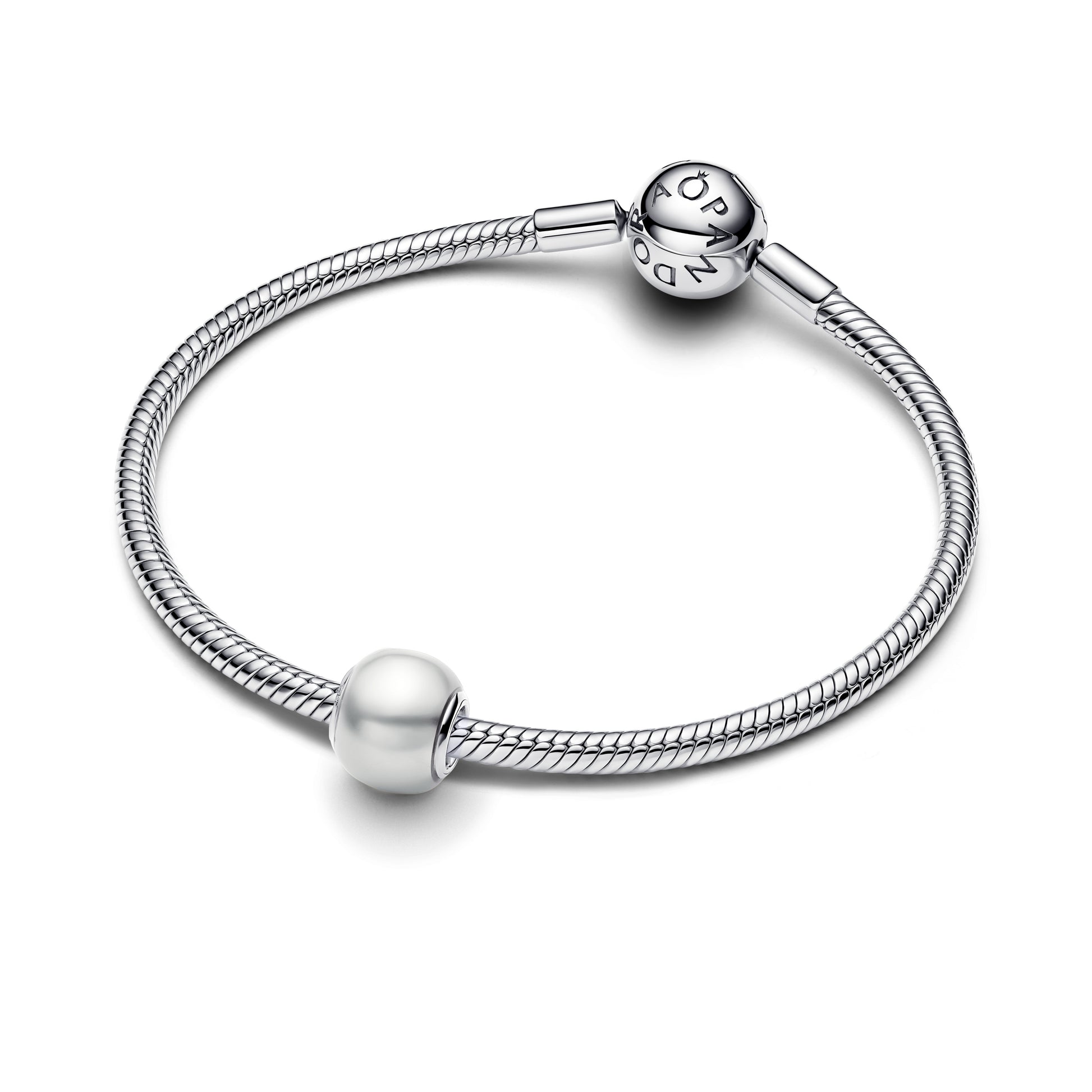 Sterling Silver Charm With White Lacquered Artificial Pearl