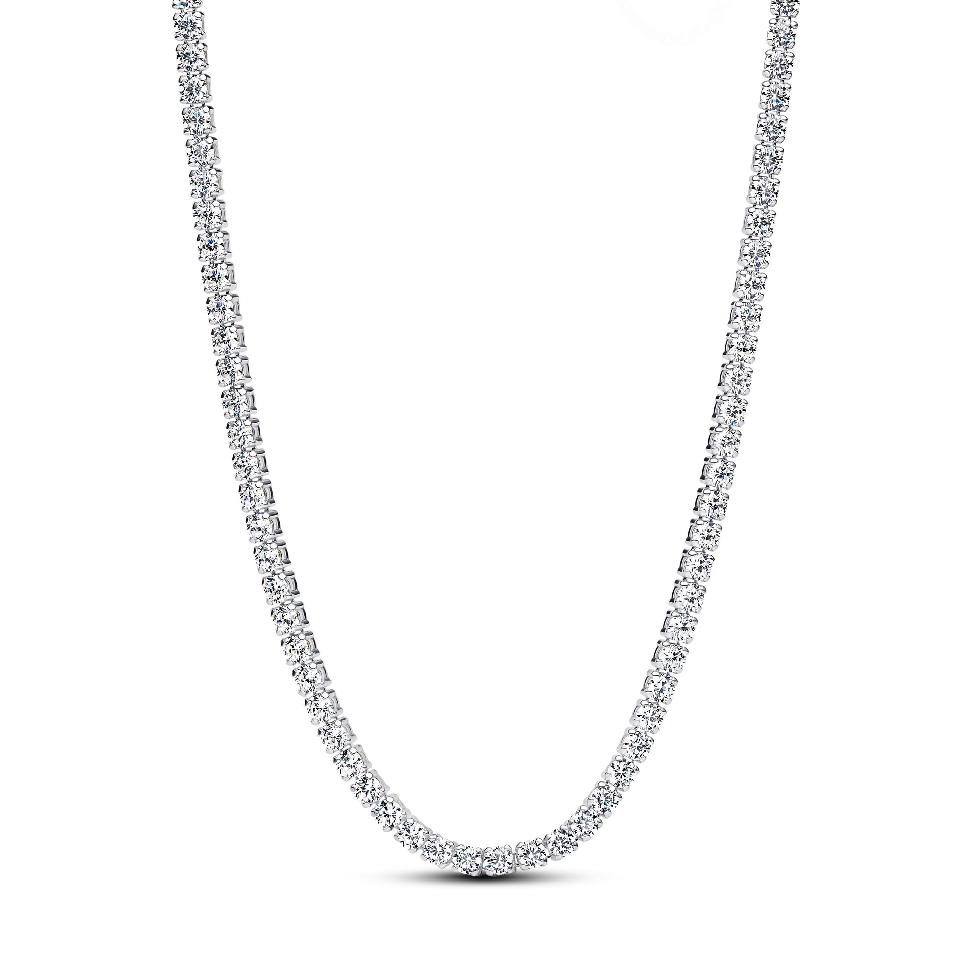 Sterling Silver Choker With Clear Cubic Zirconia And Sliding Clasp