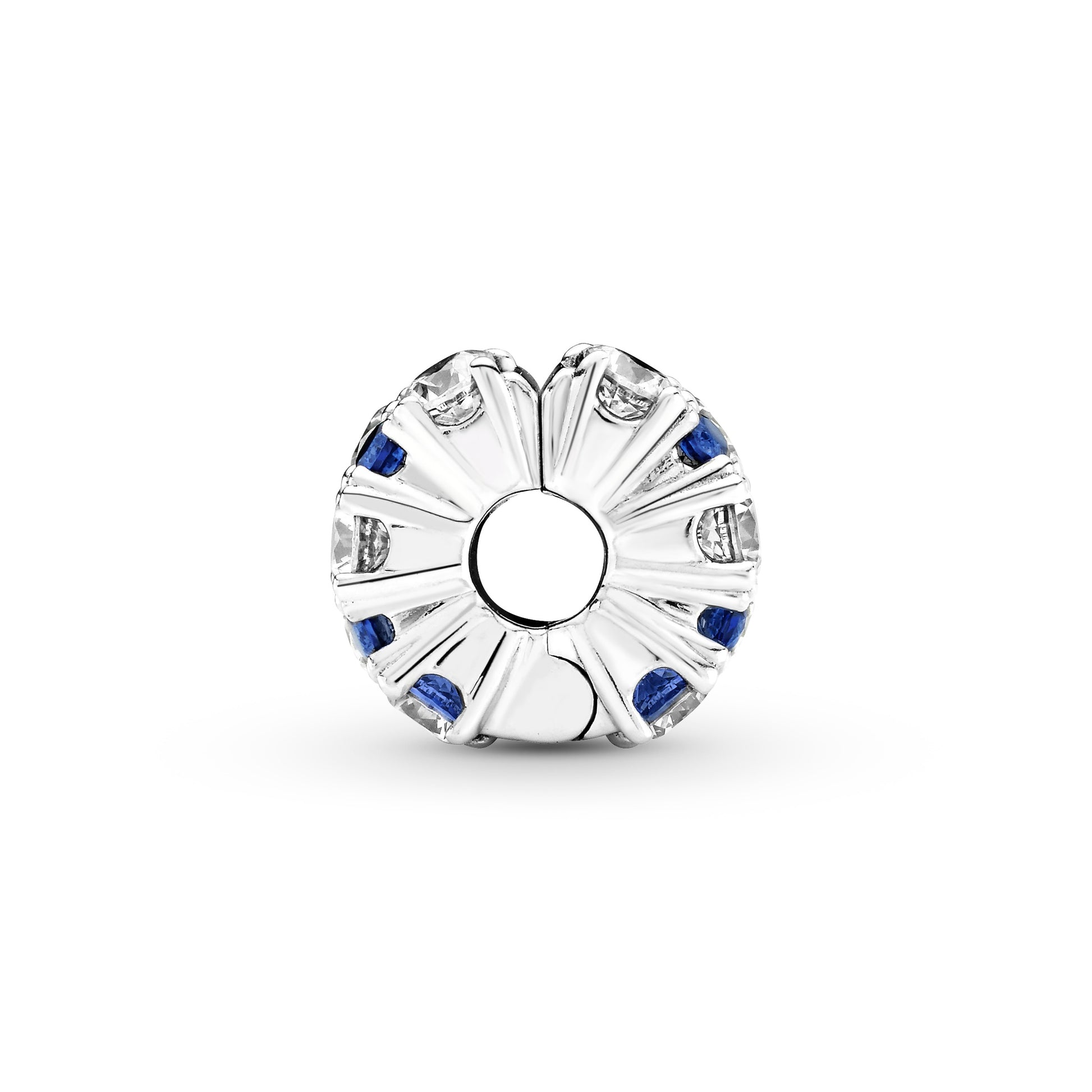 Sterling Silver Clip With Clear Cubic Zirconia And Stellar Blue Crystal And Silicone Grip