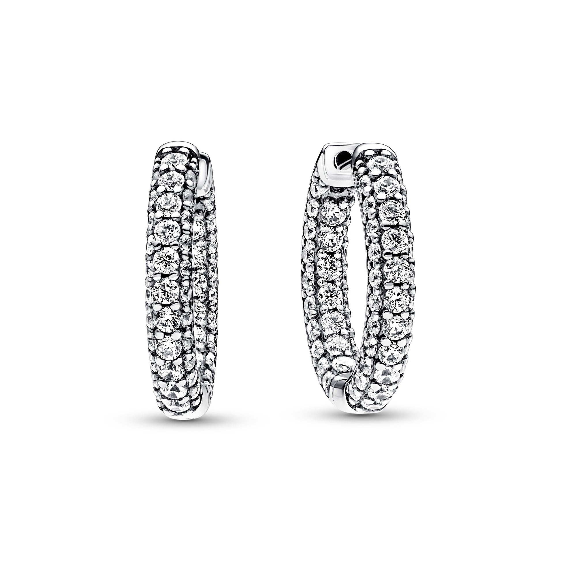 Sterling Silver Hoop Earrings With Clear Cubic Zirconia